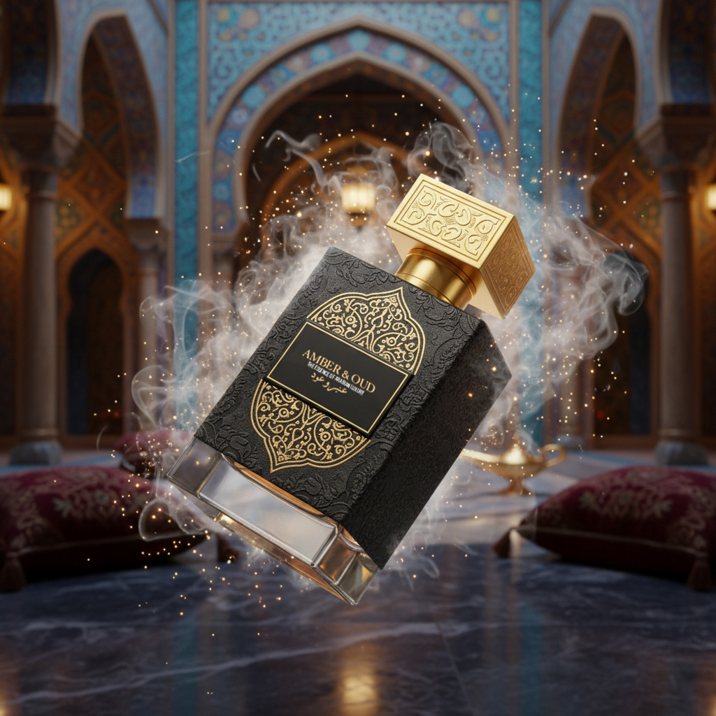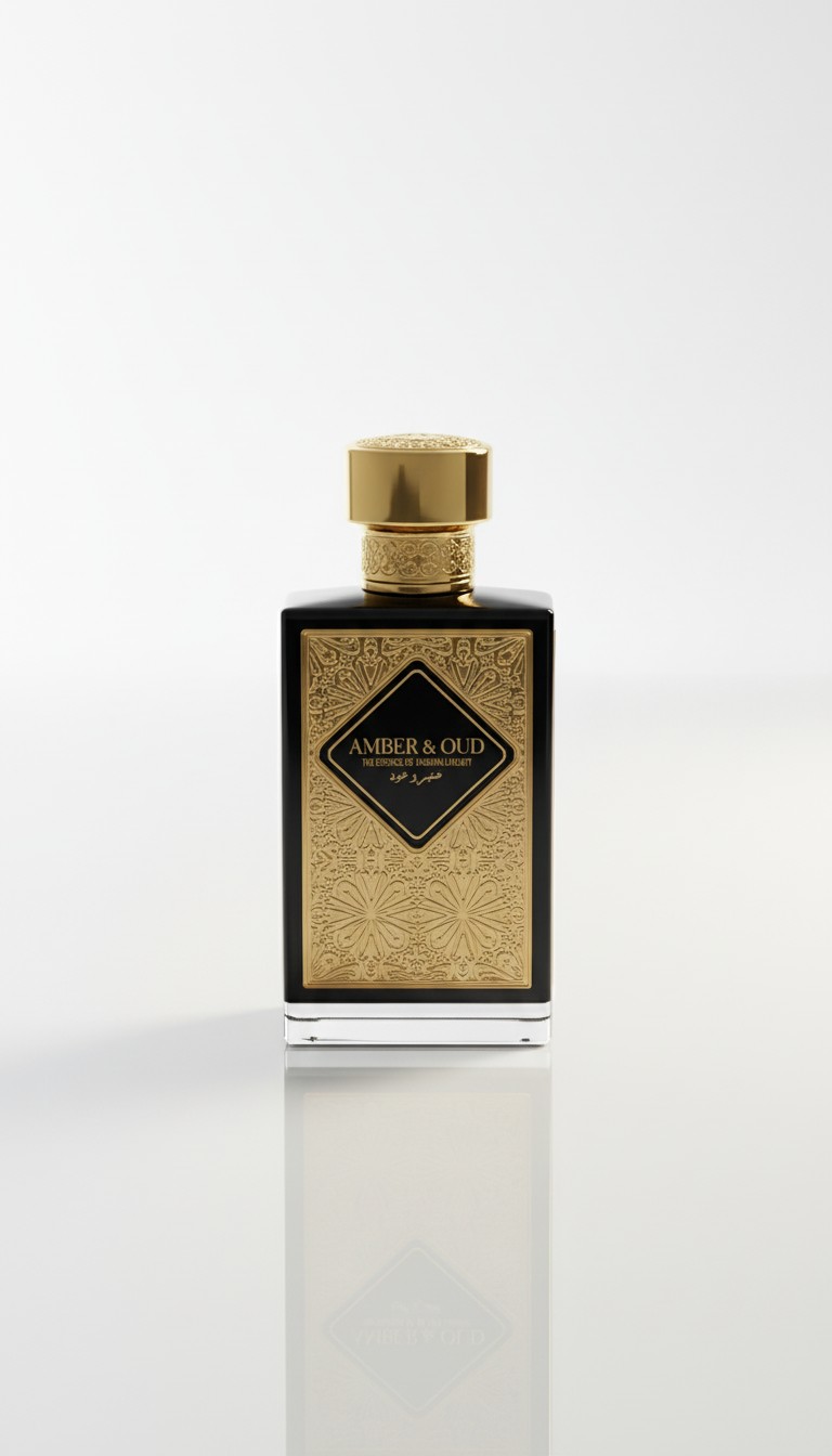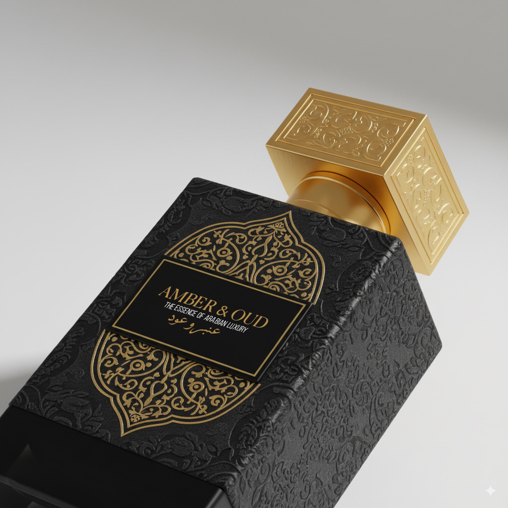 Amber & Oud的香水包装堪称是阿拉伯奢华风格的精致缩影。瓶身设计沉稳大气,黑色主调搭配金色元素,瞬间营造出高贵而神秘的氛围。瓶盖采用独特的几何形状,表面雕刻着精美的阿拉伯传统花纹,每一处细节都彰显着工艺的精湛与对传统文化的尊崇。标签上的金色文字与图案,在黑色瓶身的衬托下愈发醒目,进一步强化了奢华感。