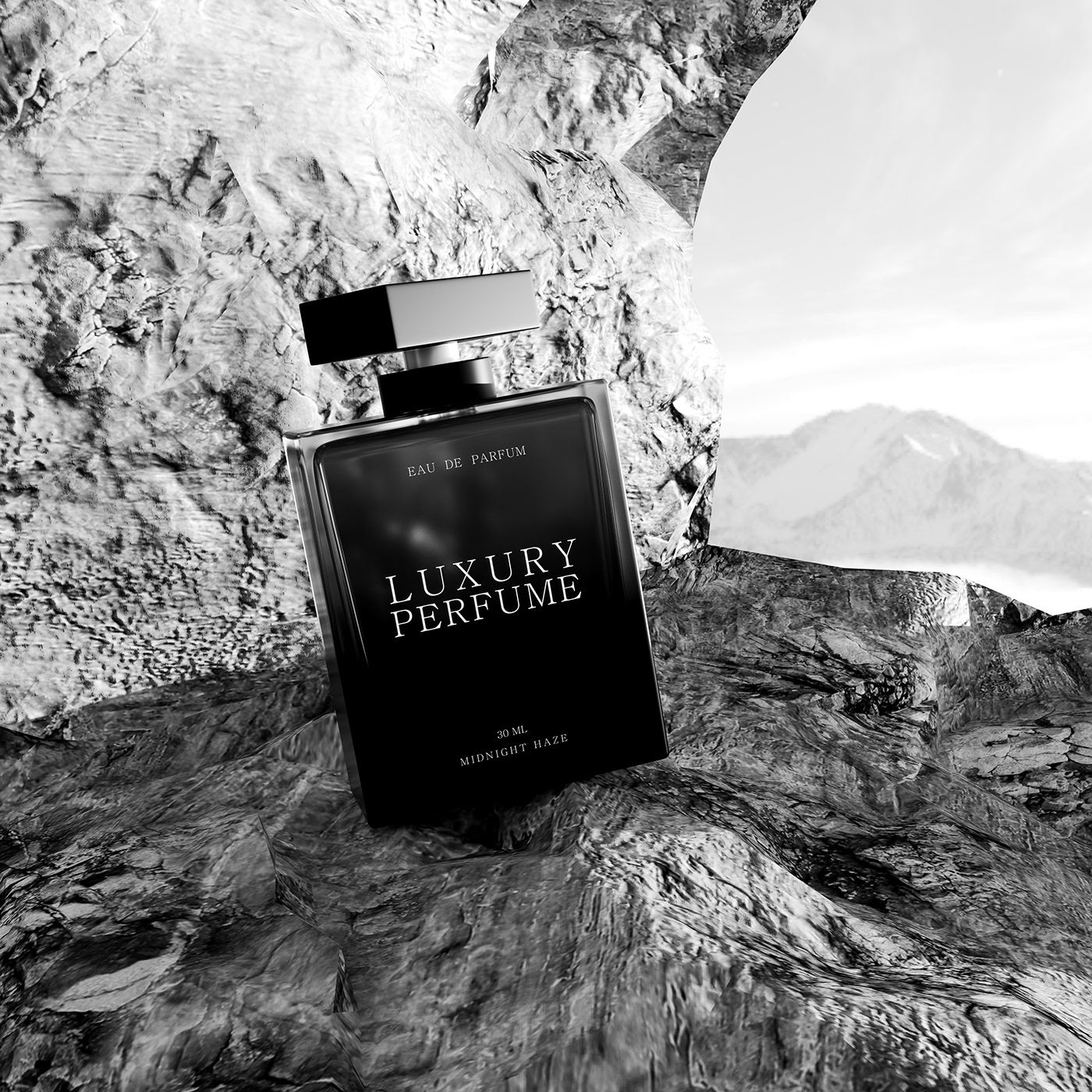 Luxury Perfume的包装设计走的是现代简约路线,却散发着高雅的格调。瓶身线条简洁流畅,以深蓝色为主色调,给人一种深邃、神秘且高贵的感觉。瓶盖设计简约而不失精致,与瓶身完美融合。标签上的白色文字简洁明了,在深蓝色背景的衬托下,清晰易读,凸显信息。