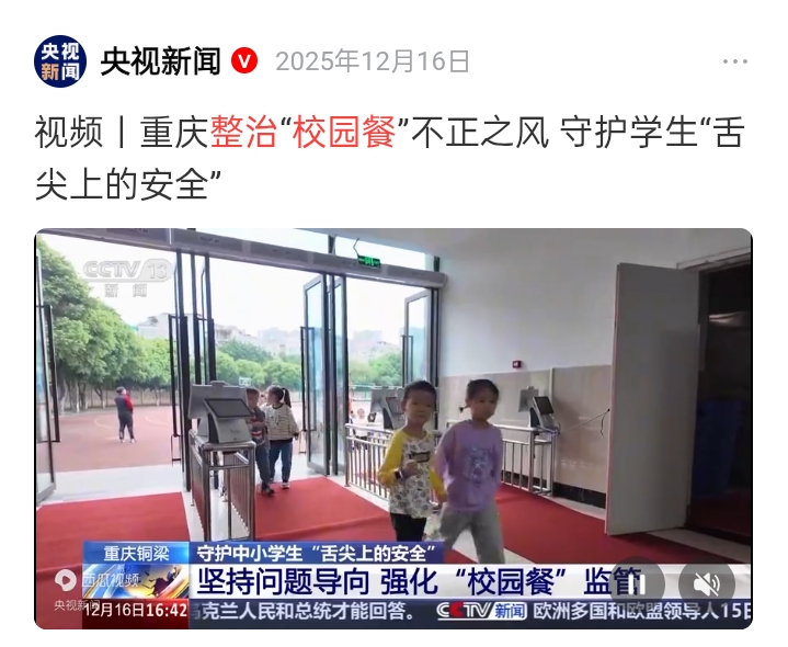 关于校园餐的问题,因为2025年某些地方发生了一些。大家之前都已经知道的事件,所以关于如何保障校园餐食品和安全质量的问题,一直都备受大家的关心。