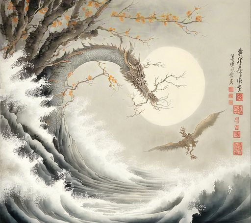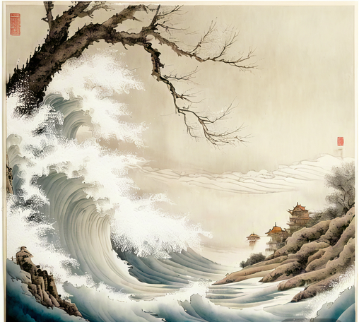 这就是黄河的壮丽画卷,既有狂野的怒涛,又有英勇的英雄。每一个细节都充满了力量与美感的完美结合,让人无法抗拒它的魅力。