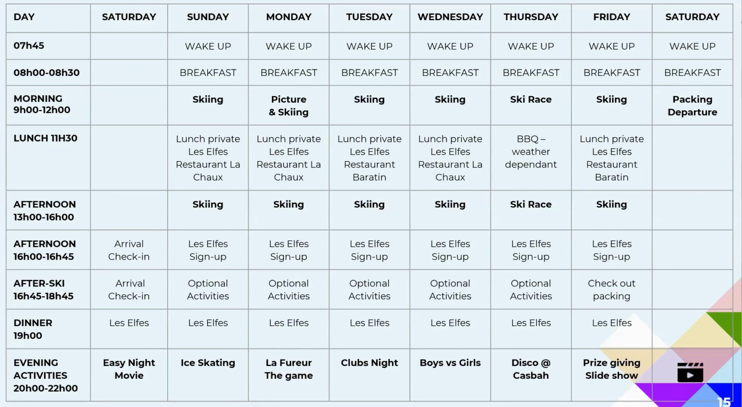 因项目特殊性,营地坚持全职化、高稳定的团队配置:半数以上员工为全职,行政管理人员合作超10年;所有滑雪/单板教练均持瑞士官方滑雪学校认证;配备专属护士、接待员、夜班警卫与辅导员,实现24小时全方位监护。