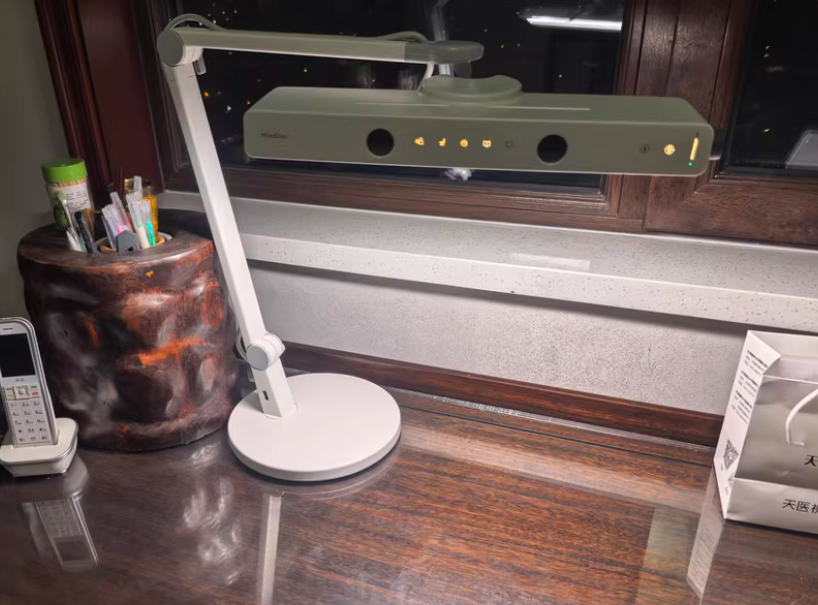 这款型号定位高端,专为孩子设计。如果孩子低头,会有语音提醒,让孩子保持良好的姿态,对眼睛更好。能照亮1.2米书桌,优于AA级,前面有遮光板,不用担心光线照射到双眼的问题。有着出色的光谱,Ra>95,色彩真实。