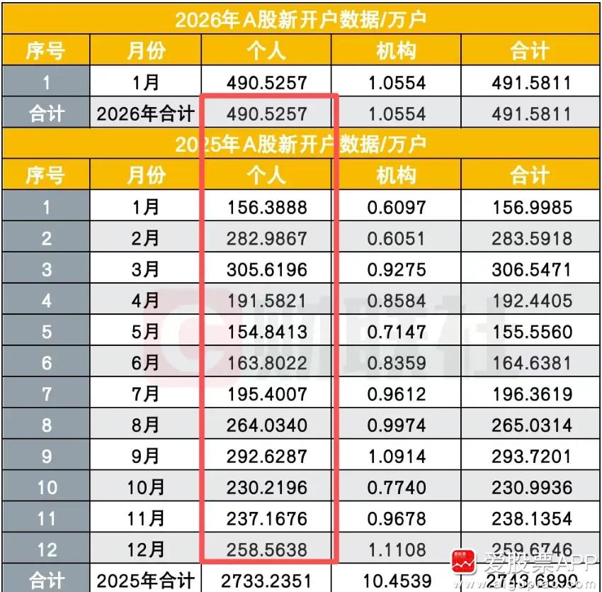 这个492万有多猛,是924以来的第二高,仅次于2024年10月的685万户。在A股历史上排在第五位,其它的都在2015年了!