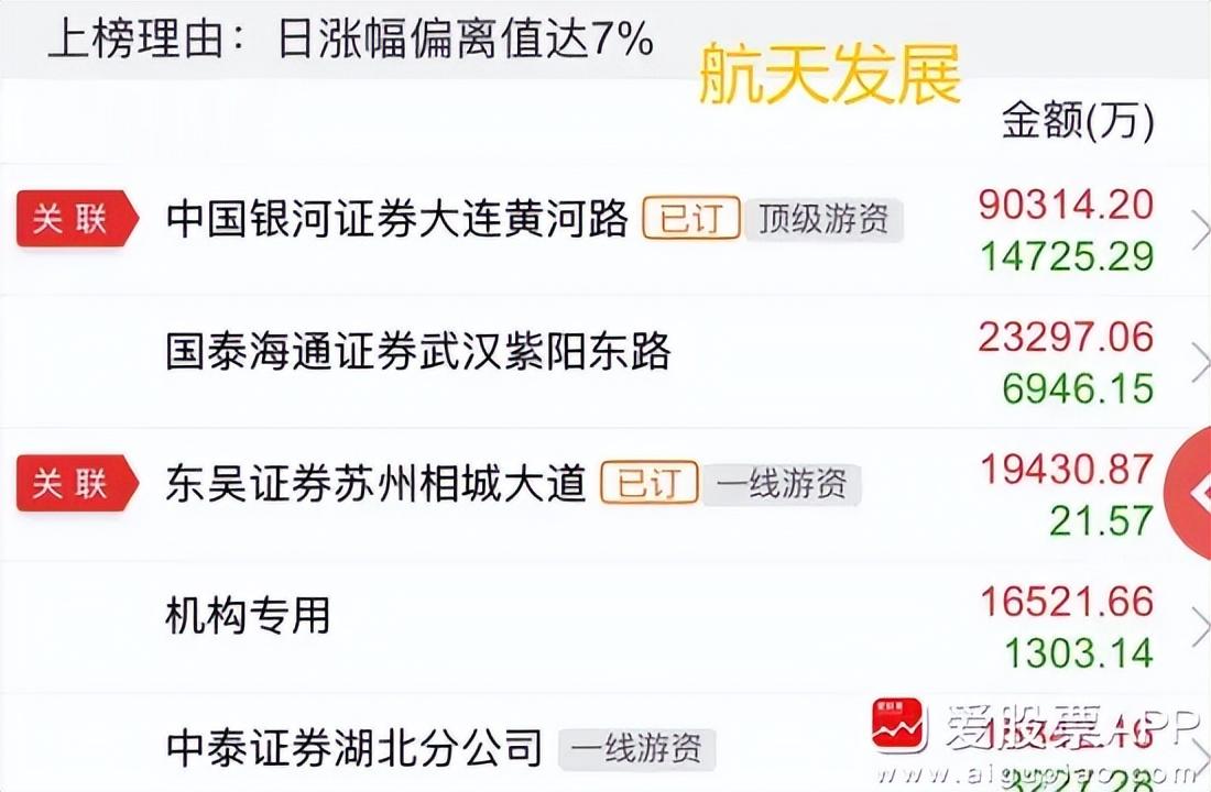 航天发展龙虎榜:中国银河证券大连黄河路证券营业部净买入7.56亿元。这个是陈小群的席位,但这个大手笔是不是他买的不好说。顶级游资回来做商业航天的二波了,明天继续观察几个核心票的持续性把。