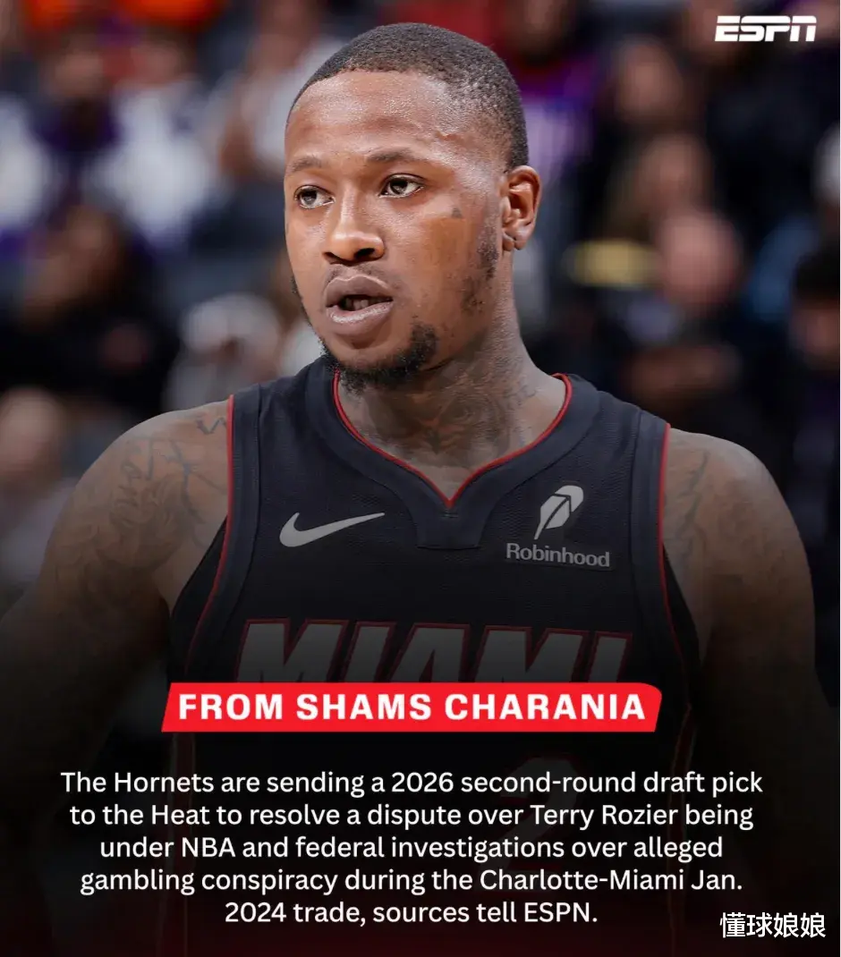 黄蜂给热火补送了1个2026年的次轮签,以了结2024年的一笔交易纠纷。事情是这样的……卿们还记得一个叫做特里-罗齐尔的球员吗?啊, 对对对,就是他👇