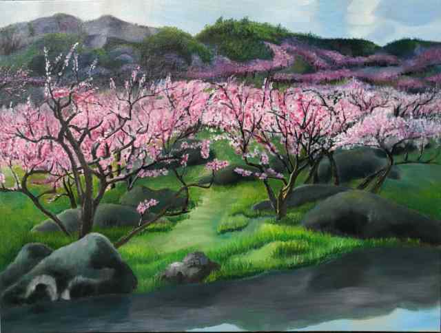 2025年6月油画《大爱》、瓷板画《山乡雪》、《春》、《山花烂漫》、《桃花朵朵开》在杭州西湖岳王庙参加精忠报国·翰墨丹青颂英魂岳飞主题书画展;