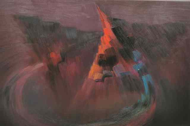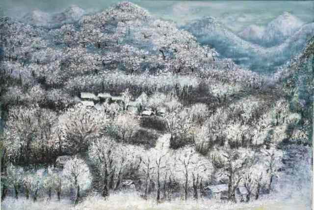 余光明的艺术创作经历了从写实风景到抽象表现的演进,但其核心始终未变,以东方美学为魂,以油画语言为体。他的写实风景画,如《晨韵》《山乡雪》,融合了古典主义的优雅、浪漫主义的奔放与印象派的光色律动,画面富有诗意,意境悠远,展现出对自然的深情礼赞。而其抽象油画,则是其艺术探索的巅峰,代表作如《生生不息》《上善若水》《唐·王维诗韵》等系列,真正实现了“以画载道”。