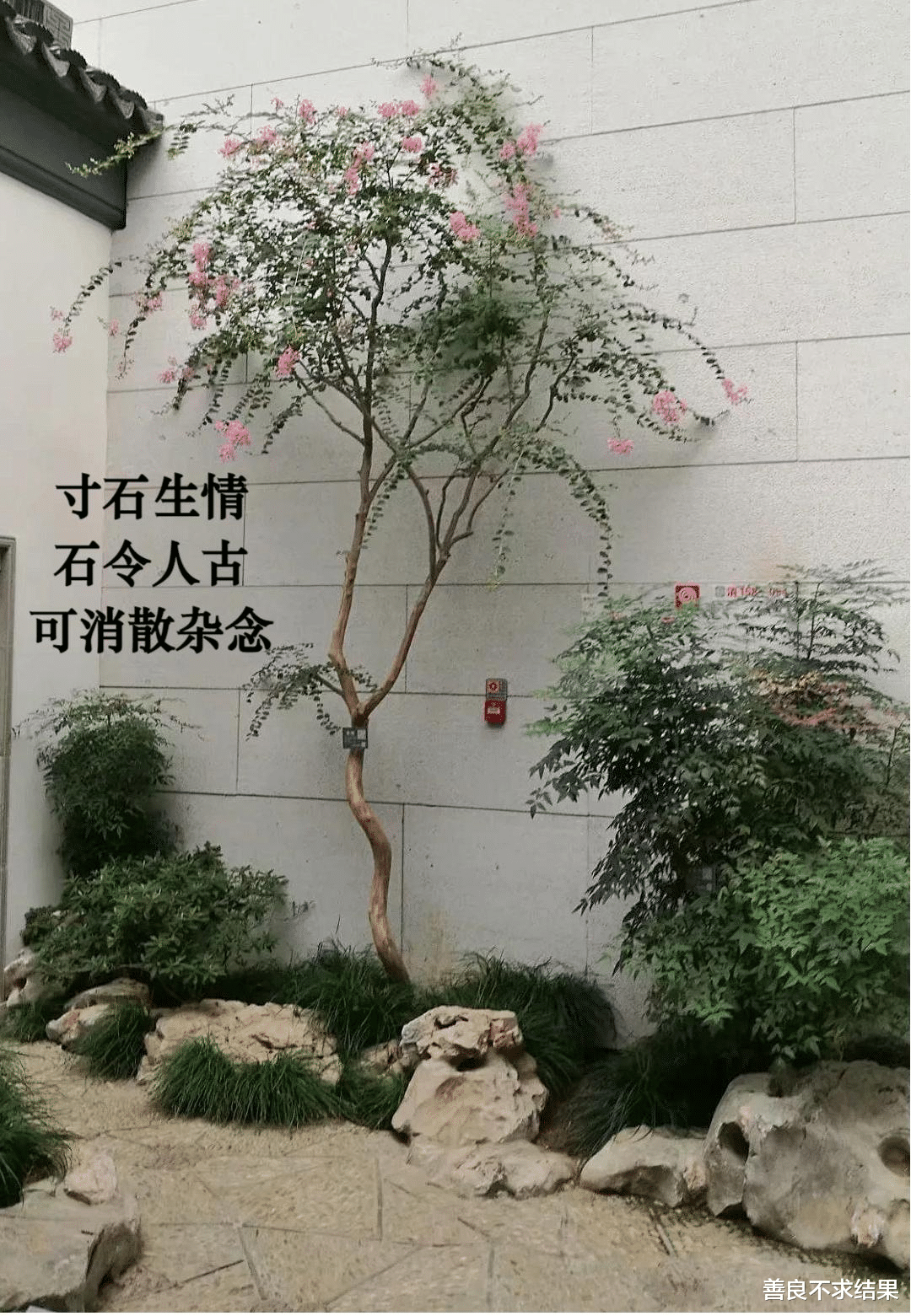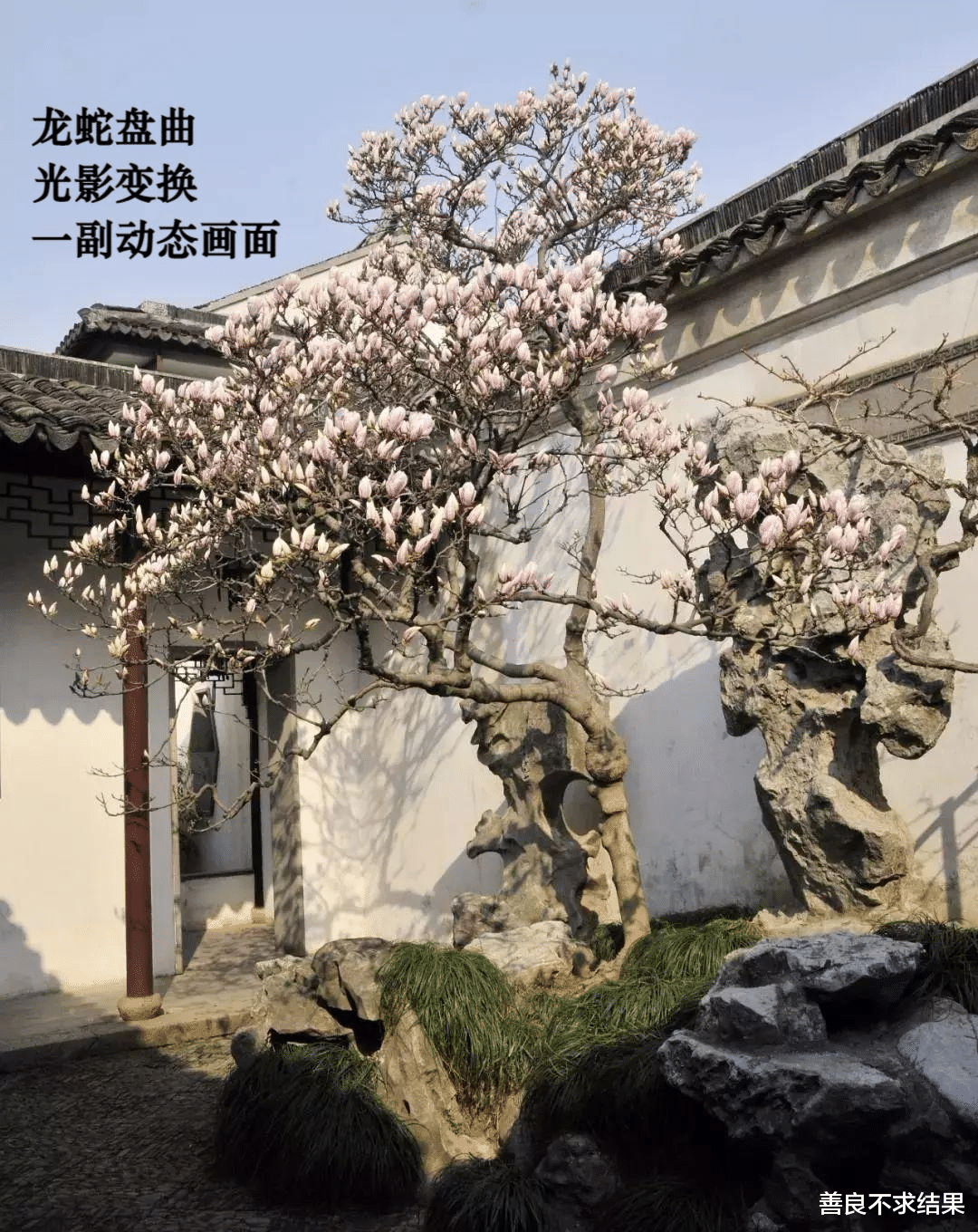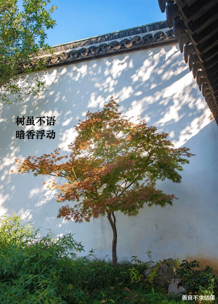 古人造园,从不追求“绿树成荫”的繁茂,反而偏爱“独木成景”的简约——在粉墙前、石旁,种一株姿态古拙的树,不求枝繁叶茂,不求花叶艳丽,只求枝干虬曲、生长缓慢,在枯荣交替间,透出岁月的厚重与生命的沉静。