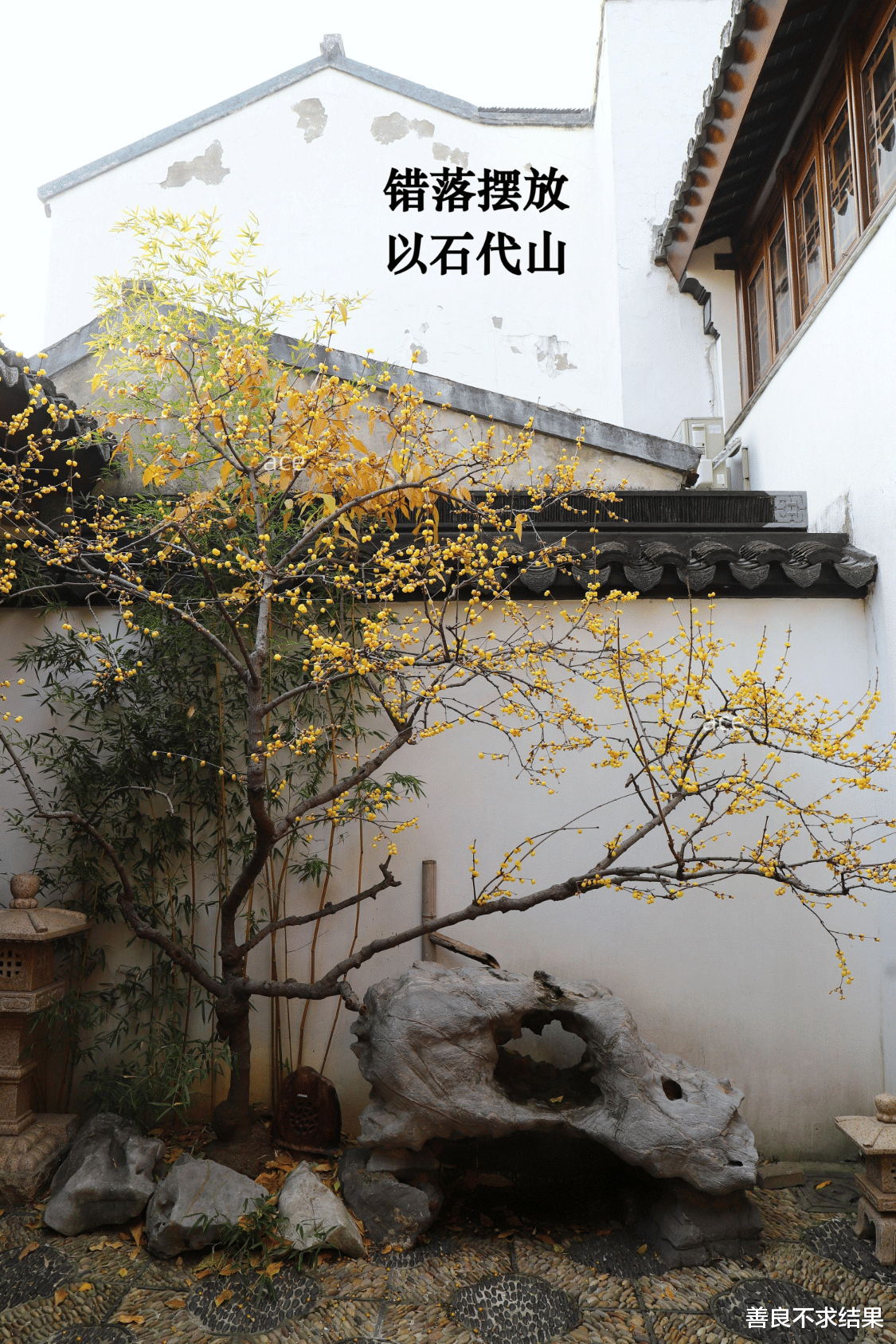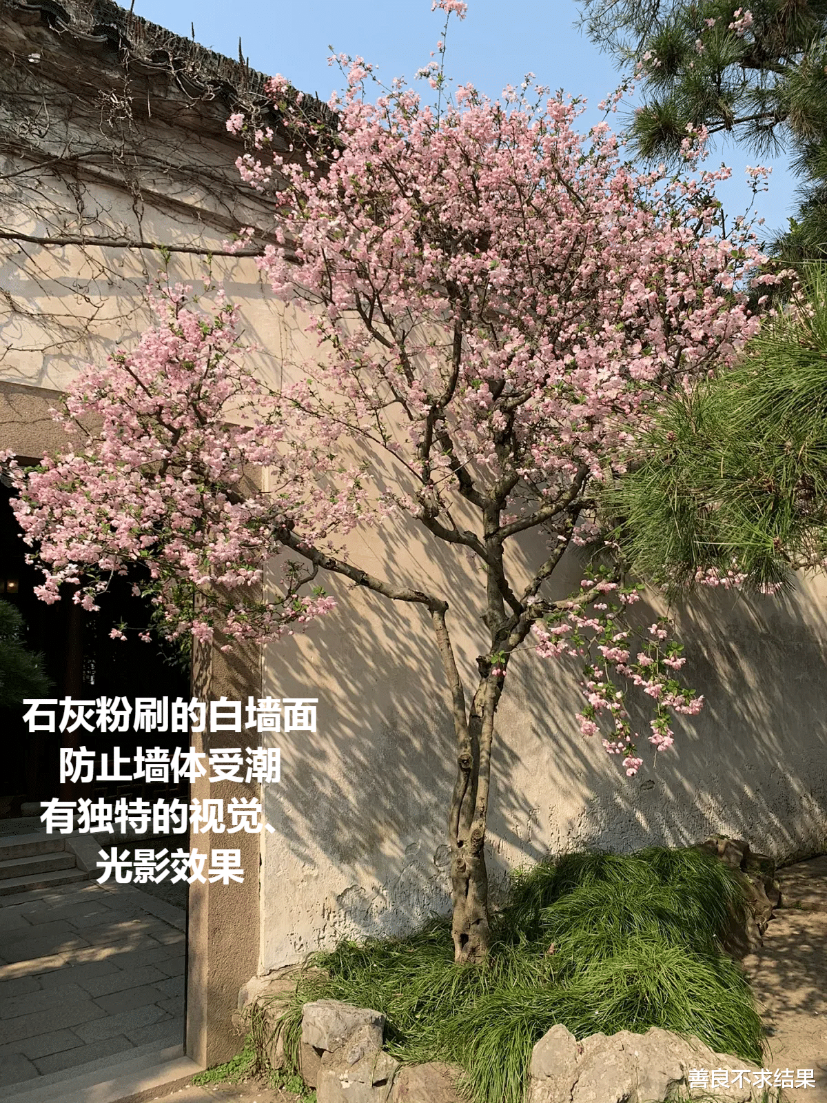 墙、树、石,单独来看,各有韵味,而当三者真正融合在一起,才能酿成中式园林最动人的沉静——石因树而坚,树因石而华,粉墙因树、石而成景,三者互补不抢戏,动静相宜、刚柔并济,构成一幅完整的“静心画卷”。