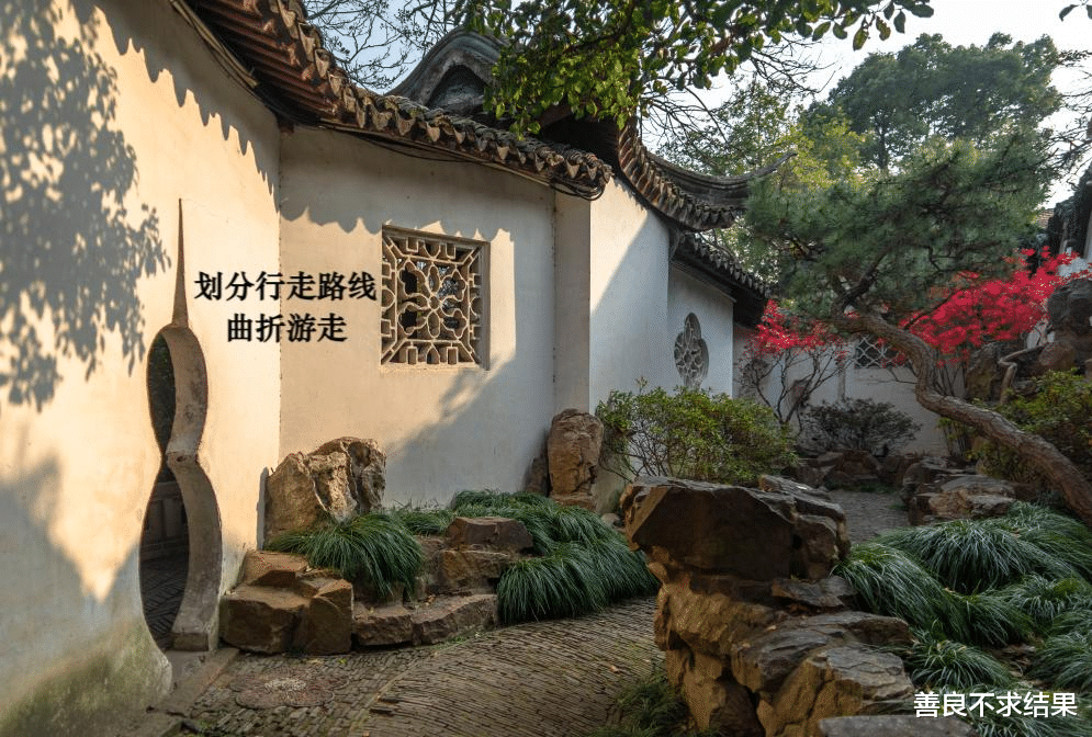 游墙,则主打“曲折游走”,打破了直线墙的呆板,在平面上蜿蜒曲折,划分出多变的游走路线。一步一转折,一墙一景致,游墙让园林的空间变得无限延伸,看似不大的园子,因游墙的曲折,生出无数层次,访客漫步其间,目光被景致牵引,心绪自然沉静下来,不会有丝毫浮躁。