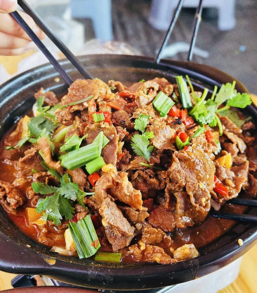 广德的炖锅用本地笋干和土猪肉,现点现烧,保住了一口锅气;蚌埠的烧饼夹里脊,面香混着肉香,是当地人多年的记忆;金寨的吊锅做法传了多年,围着铁锅吃饭的热闹劲儿,是山野间独有的体验;池州的贵池小粑,则带着皖南最家常的烟火滋味。