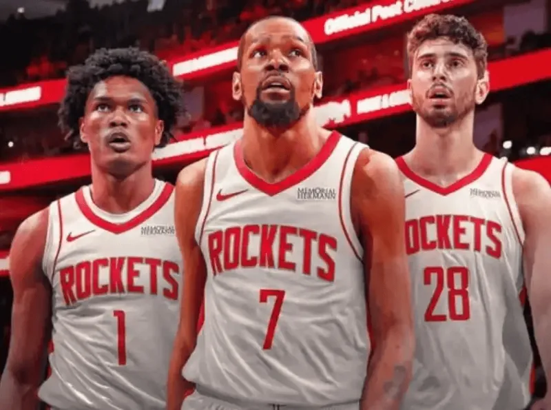 如果是杜兰特三分线内接球,传给杜兰特的球很容易失误。火箭场上有2-3个非空间点,这些人的防守人会去肆意包夹杜兰特,抢断杜兰特。