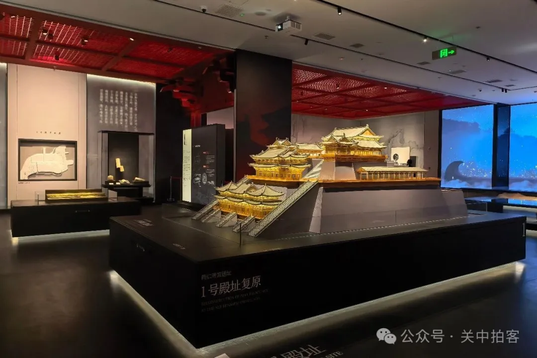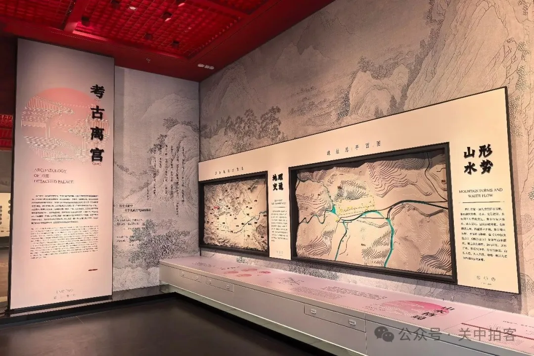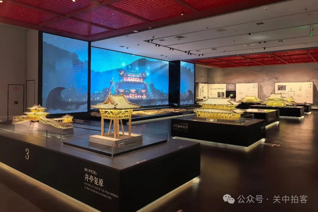 在二层的展厅内,以“云构九阙”为主题,展示了麟游考古发现的隋唐离宫建筑。公元593年,隋文帝杨坚下令修建仁寿宫,由建筑大师宇文恺规划设计,历时两年,拔地而起,飞檐映日,雕甍接云。