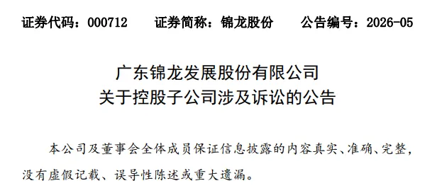 2026年1月21日,锦龙股份发布公告,公司控股子公司中山证券收到吉林省长春市中级人民法院《应诉通知书》(〔2026〕吉01民初7号)。