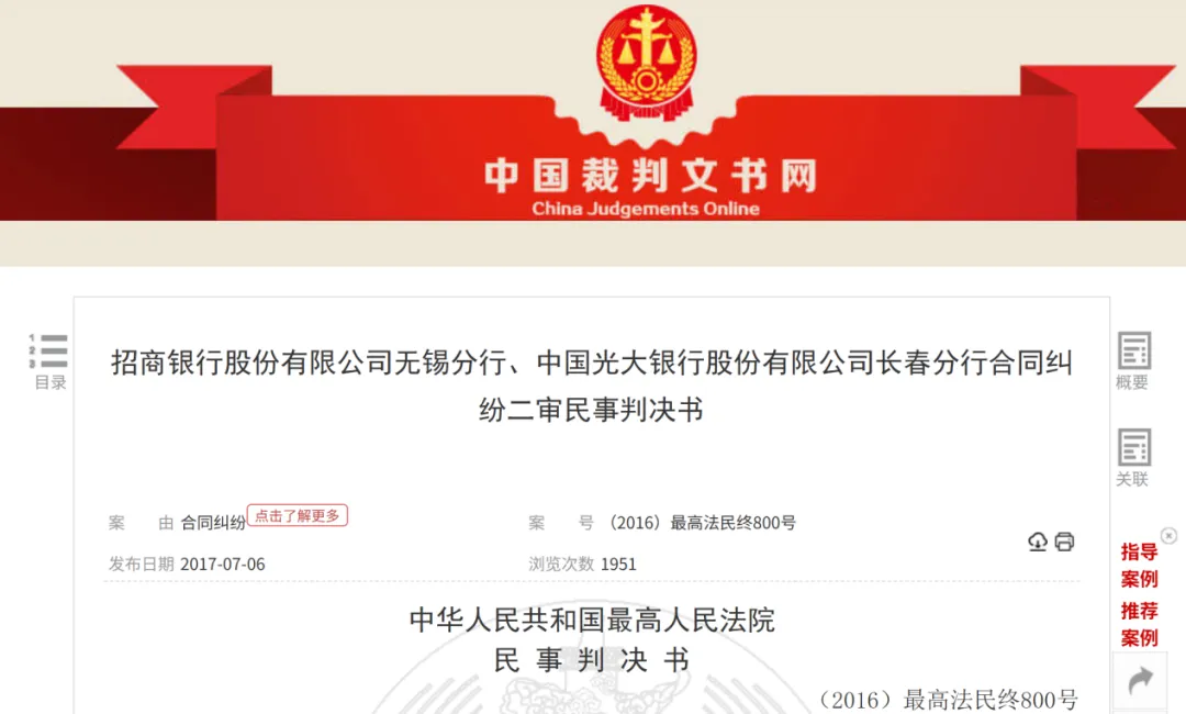 光大银行长春分行先以合同纠纷为由,将招商银行无锡分行诉至法院。吉林省高院一审作出对光大银行长春分行有利判决,判令招行无锡分行返还本金及利息。招商银行无锡分行不服判决,上诉至最高人民法院。