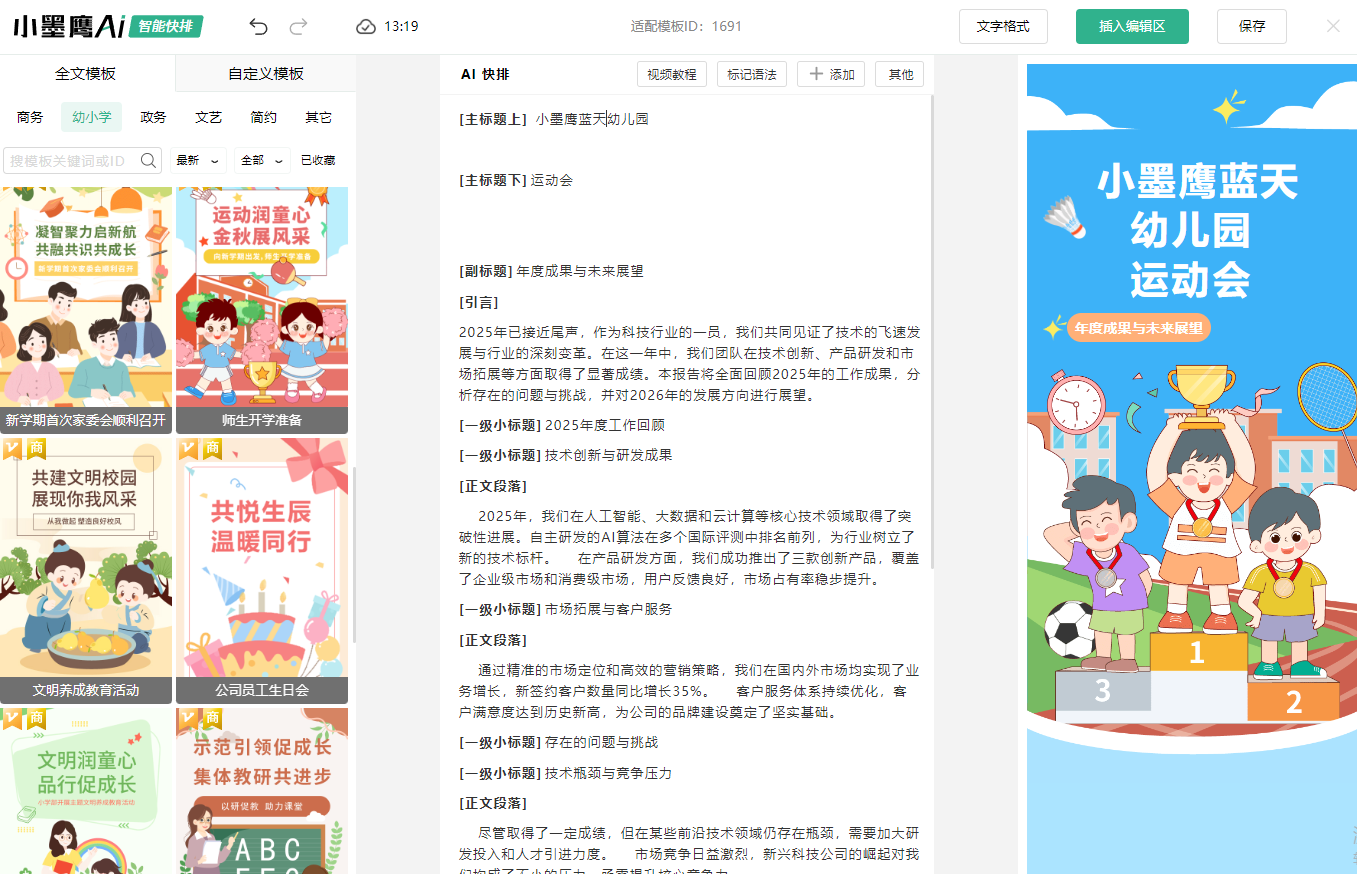 所以,无论是为幼儿园活动发布动态,还是班级展示孩子的精彩瞬间,选择小墨鹰编辑器都能助力您事半功倍,制作出的宣传排版作品更加精彩!