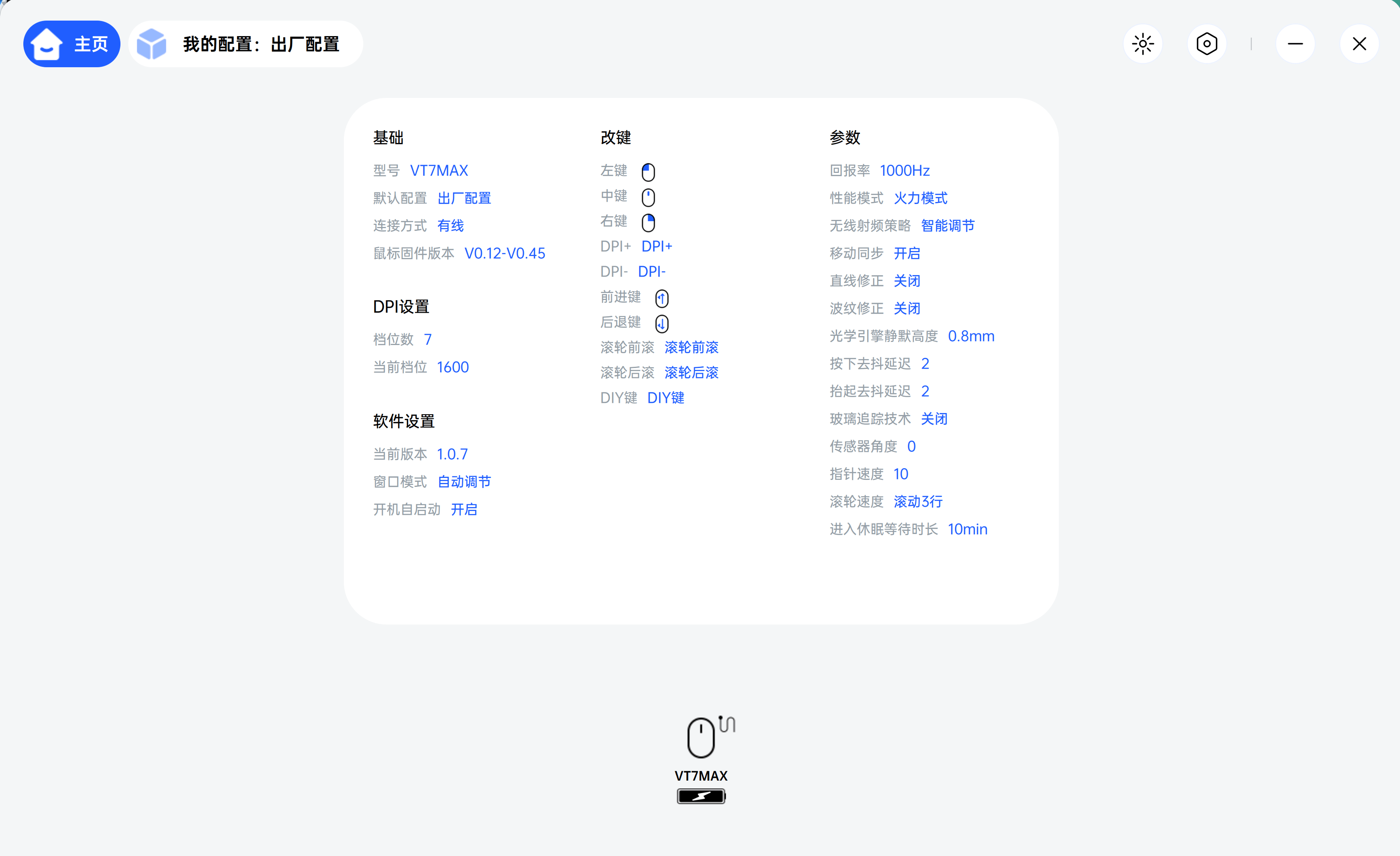 雷柏VT7系列鼠标支持电脑端软件A Hub连接设置,连接好鼠标后,可以通过电脑端了解鼠标的详细情况和基本参数,可以更好地了解鼠标的性能。