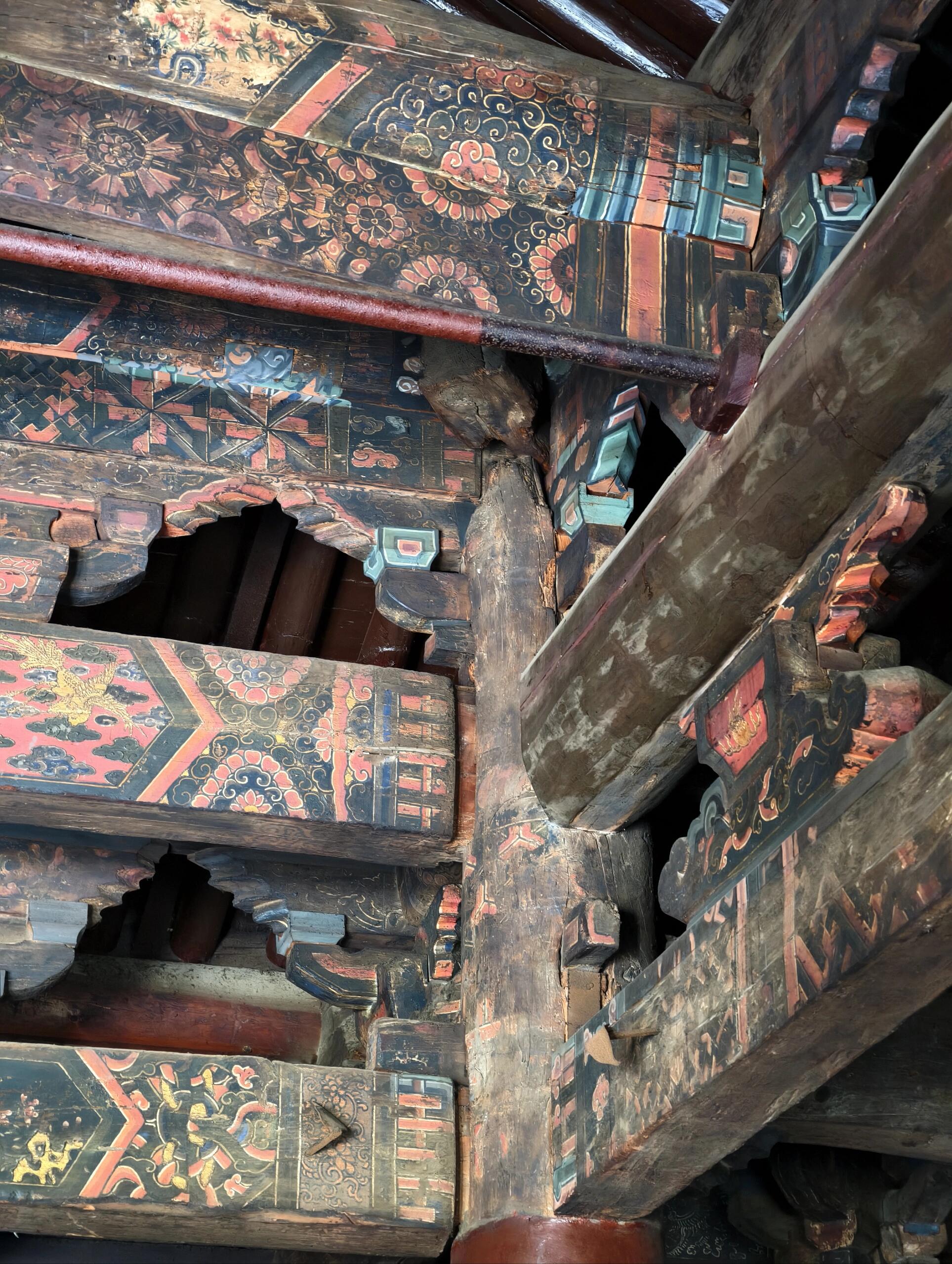 最令人惊叹的,当属大殿梁架与斗拱上遍施的彩绘。这些彩绘历经数百年,虽已有些许斑驳,却依然能让人感受到当初绘制时的精美绝伦。彩绘的图案丰富多样,有传统的龙凤纹样,彰显着皇家的威严与神圣;也有花鸟鱼虫等自然元素,充满了生活气息与艺术美感。每一笔勾勒,每一种色彩的搭配,都凝聚着古代画师的心血与智慧。这些彩绘不仅仅是装饰,更是一种文化的传承,它们将当时人们的审美观念、宗教信仰以及对美好生活的向往,都一一呈现在后人面前。