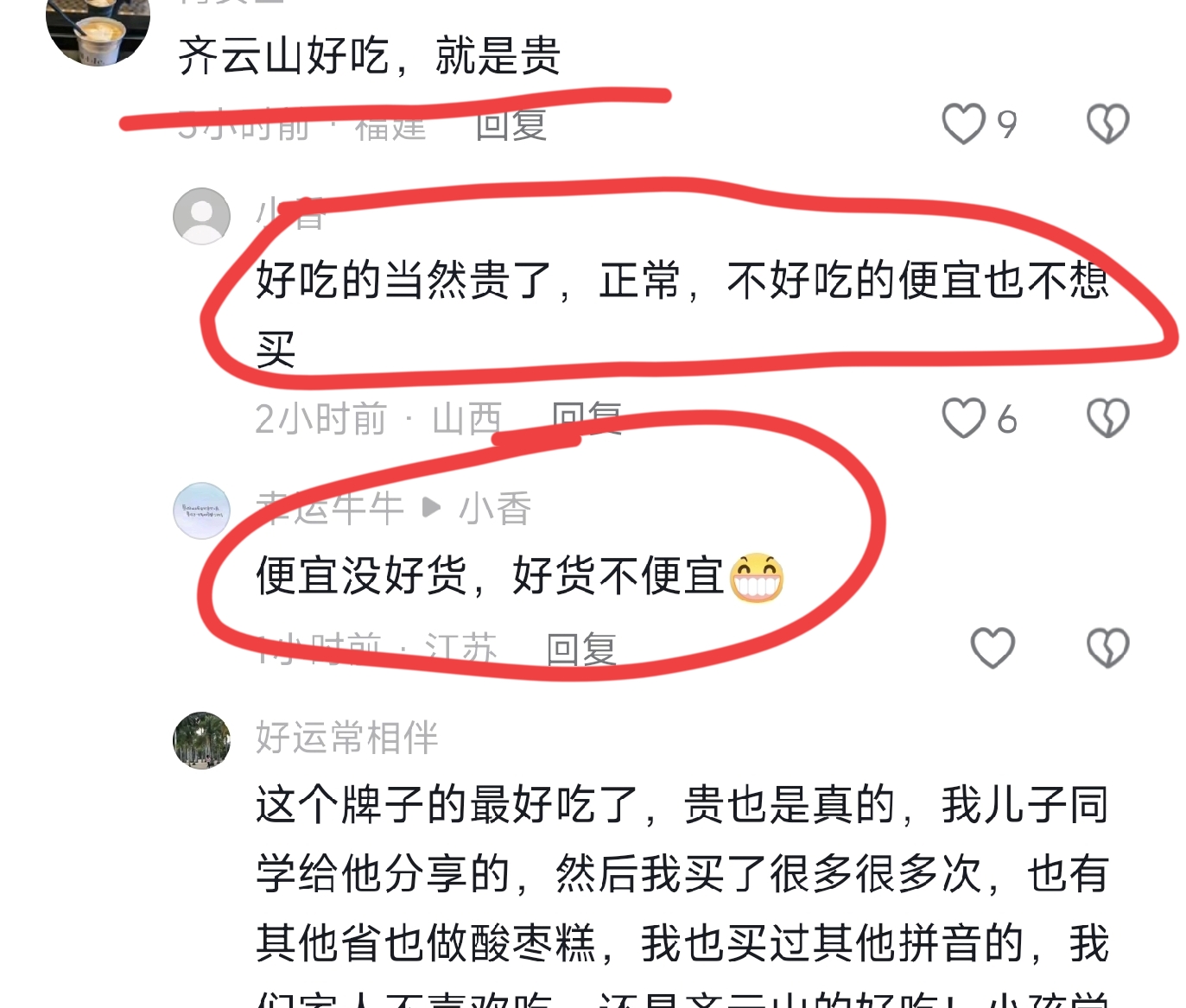 网友其实也知道,好吃的东西价格相对贵点可以理解