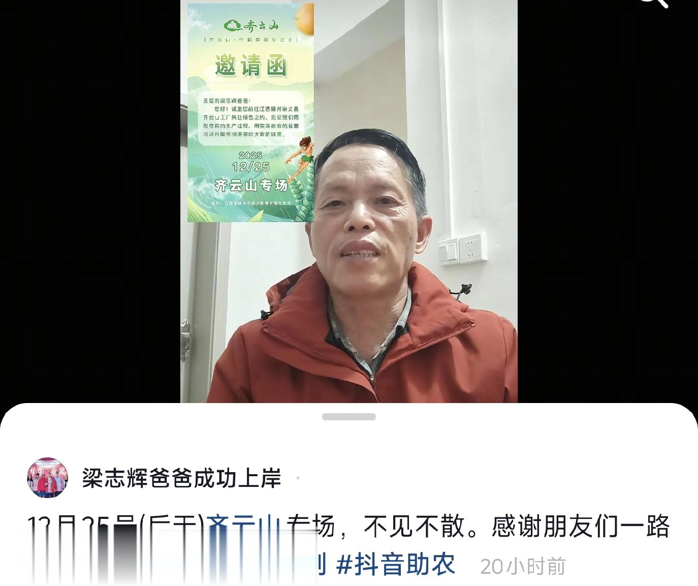 12月24日梁爸更新了动态,这次他们直播不用长途跋涉出远门了,因为这次是在江西老家县城的一个小企业直播,看到网友留言说:就在江西省赣州市崇义县城