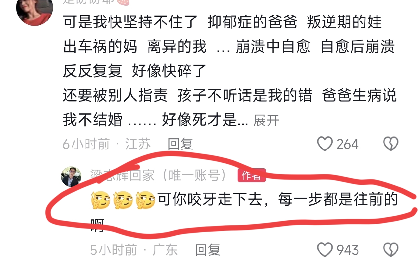 梁志辉看到这位濒临崩溃的网友留言后回复
