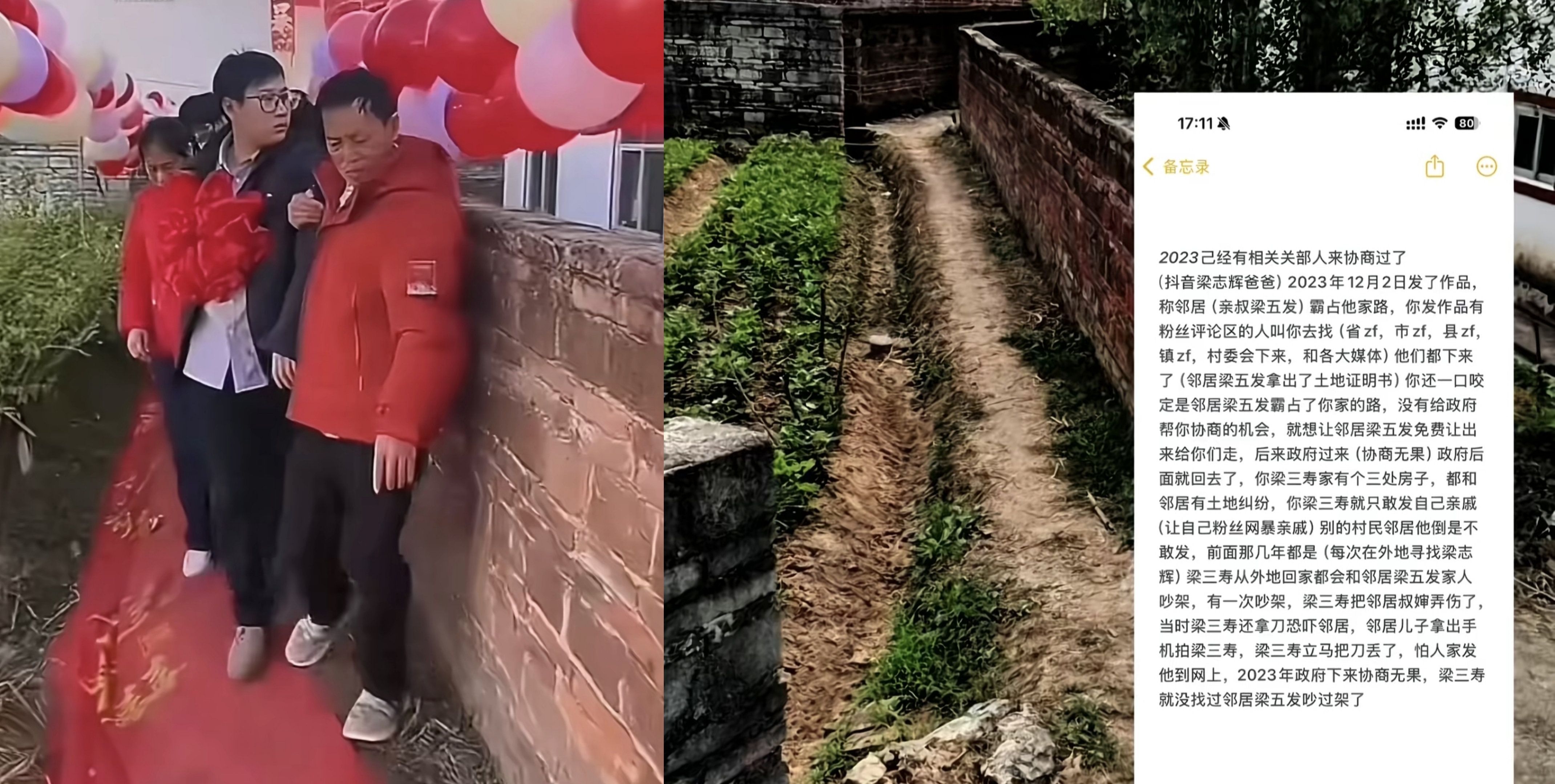 因为前一段时间有疑似当地的网友已经和梁爸所在村里的村干部说过这件事了,当时那位网友还发布了村干部去协调梁爸家里那条小路是图片,没想到马上快一个月了,还是没有动工的迹象…