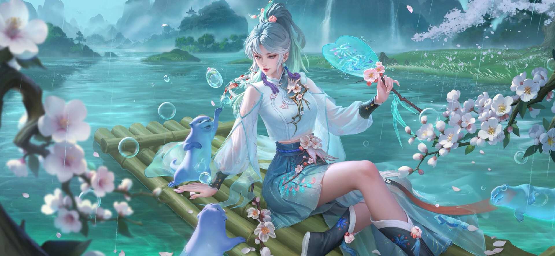 也就是说,这款皮肤是雨水节气之灵,在设计上可以看到它和水元素有关,而且整体形象看着非常的舒服,特别是这高束的马尾形象,确实让我能够明显的觉到这款皮肤的形象特征,要比上官婉儿其他皮肤都好看。