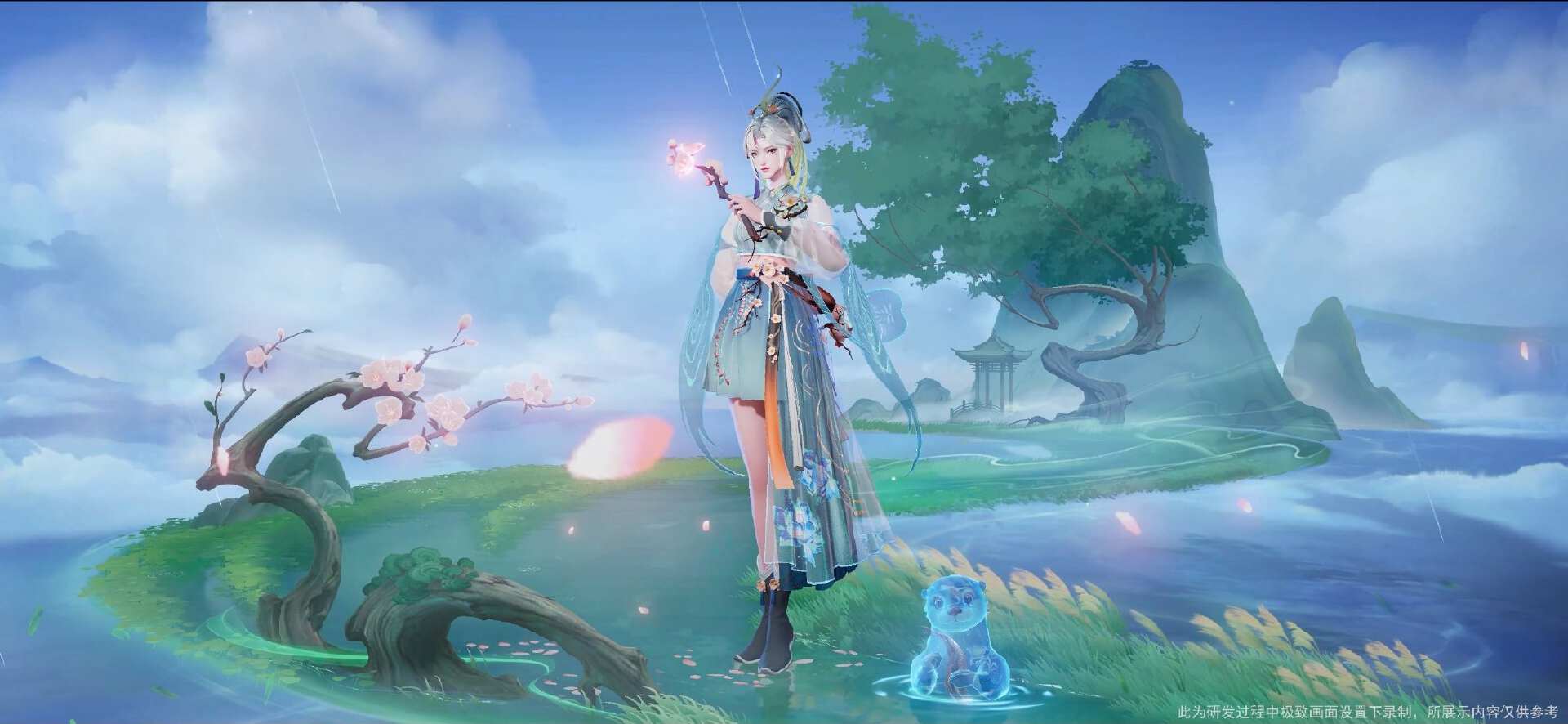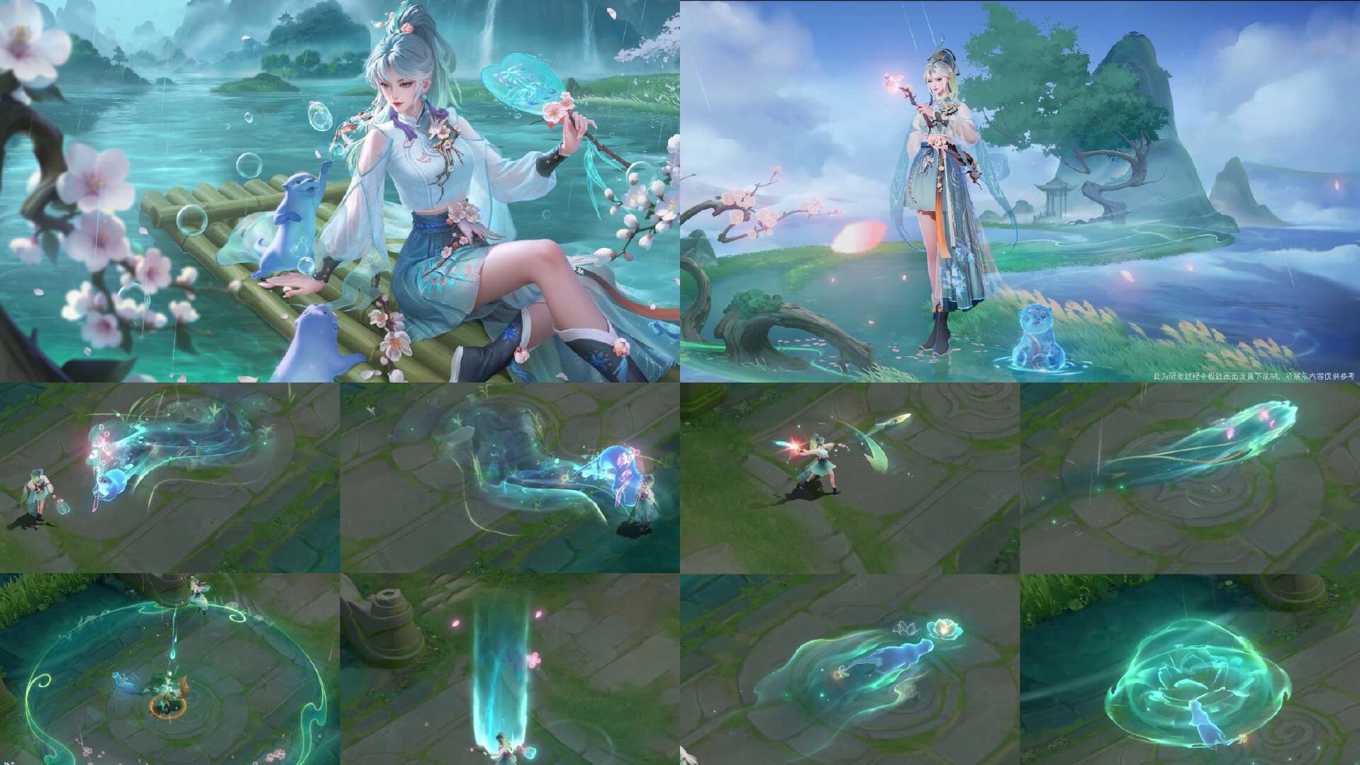 和之前看到的基本上一样,这款皮肤的整体设计确实非常好看,反正我觉得这款皮肤的设计是挺不错的,根据官方的描述来看,这款皮肤是以雨水节气为灵感,然后塑造了一位灵动、润泽万物的雨水之灵形象。