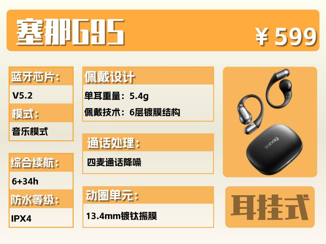 推荐理由:五百元以下最值得买的开放式蓝牙耳机,性价比极高,同价位中没有对手!