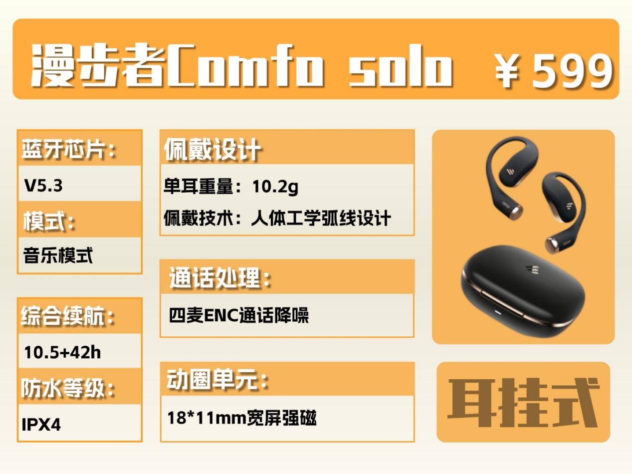漫步者 Comfo solo价格:599 元推荐程度:★★★★推荐理由:耳机的音质比较有特色,整体实力不错,喜欢的可以冲!