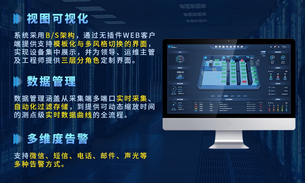 硬件是“骨架”,软件则赋予系统“思考与行动能力”。方案软件覆盖视图、数据、告警、控制全流程,通过精细化管理提升运维效率。