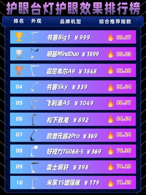 二、护眼灯排行榜十强品牌有哪些?护眼台灯十大排名揭晓,优中选优
