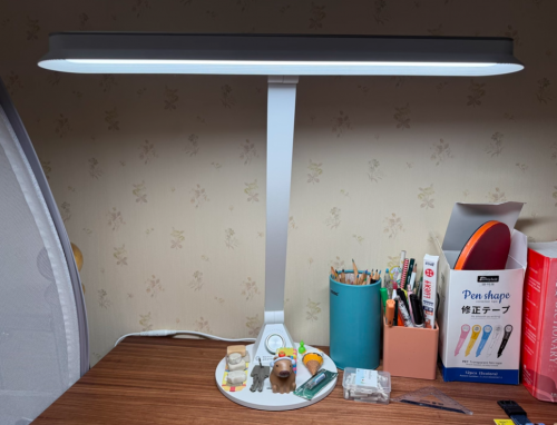 护眼灯排行榜十强品牌有哪些?松下致莫护眼台灯外观设计简洁耐看,摆在书桌上不会显得突兀,比较适配家庭学习环境。它采用双臂转轴结构,调整灯光角度时比较灵活,能根据坐姿和桌面布局找到合适的照明位置。不过双臂转轴材质稍显单薄,调节时需注意力度。