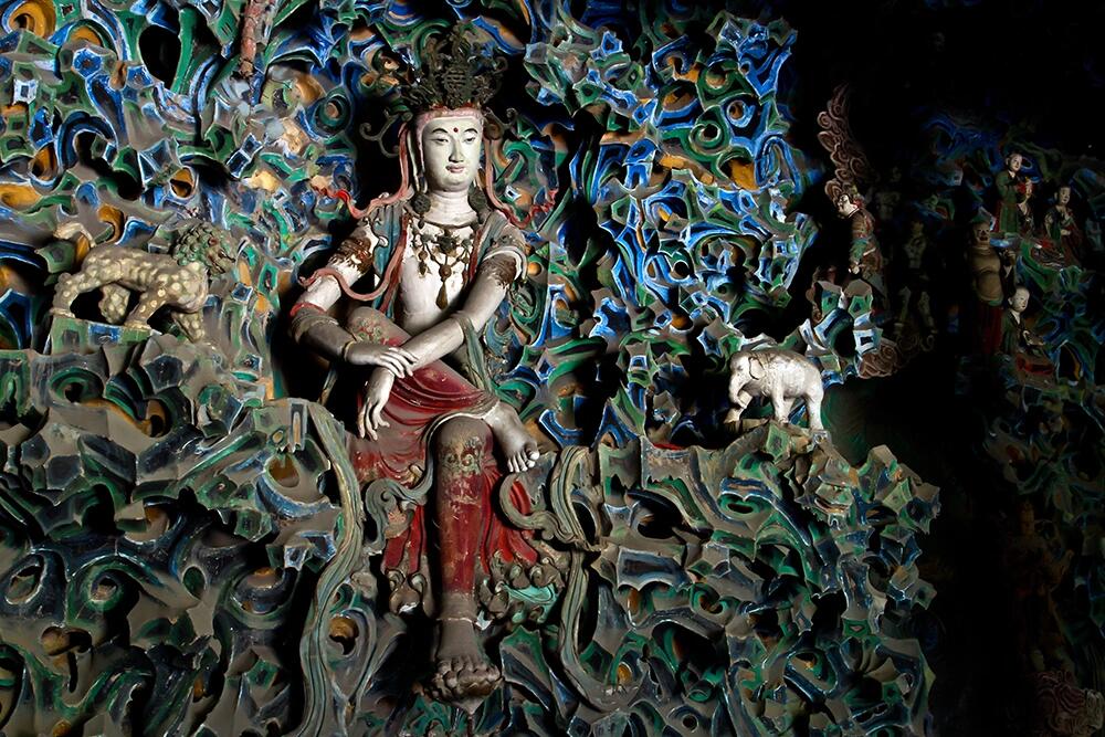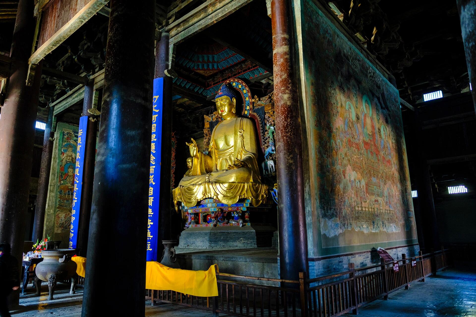 如今的摩尼殿,依然保持着北宋时期的主要结构,明、清两代的修缮只是对局部进行了修补,没有改变它的整体形制。站在殿内,看着北宋的梁架、明代的观音像与满墙的壁画,你会感觉自己仿佛穿越了时空,与千年前的工匠、信徒隔空对话。建筑学家说它“规模宏大、气势磅礴”,确实不假——十字歇山顶的独特造型、深远的出檐、严谨的斗拱结构,每一处都彰显着北宋建筑的雄浑与精巧。可摩尼殿的魅力,远不止于建筑本身,那些未解的谜题、跨越千年的艺术融合,才是它真正吸引人的地方。