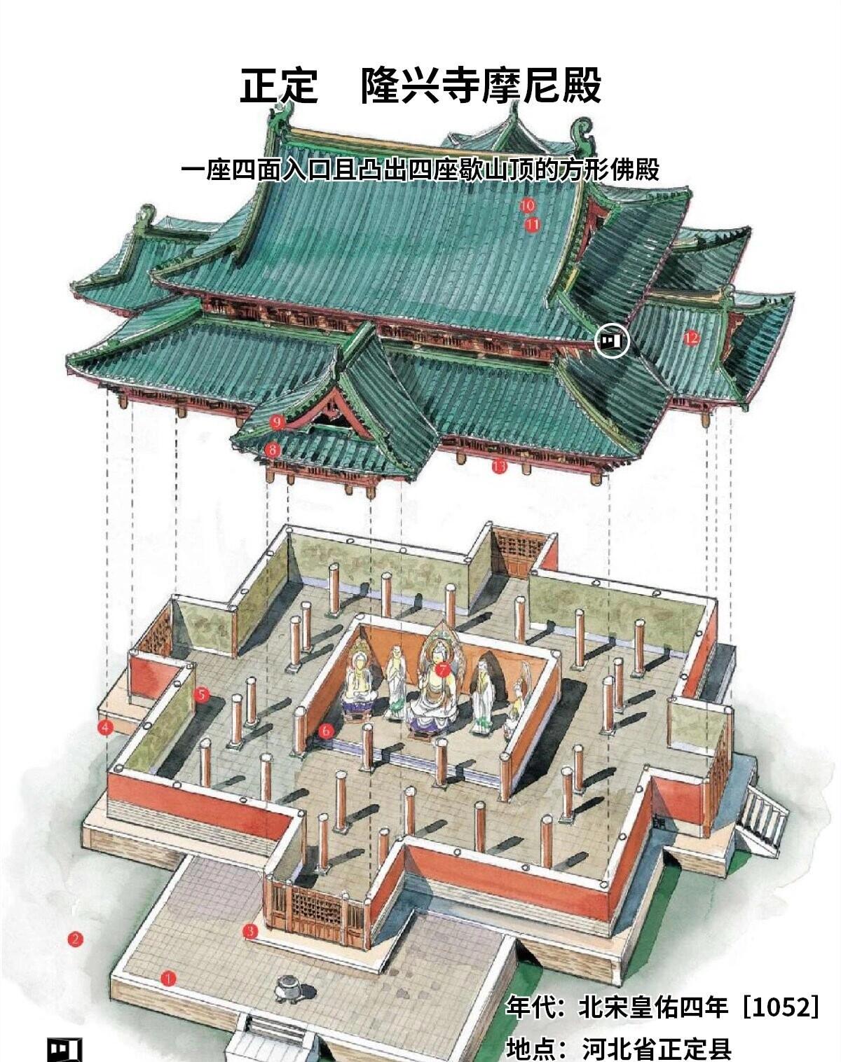 站在正定隆兴寺的山门内,目光穿过层层院落,最先抓住人心的不是高耸的佛塔,而是那座造型颠覆认知的摩尼殿。它像一位沉默的北宋匠人,用斗拱、梁架与飞檐,在千年后依然诉说着《营造法式》里的营造智慧。这座被称作“海内孤例”的大殿,藏着太多让建筑学家惊叹的细节:十字歇山顶为何能在北方风沙中稳立千年?殿内的斗拱如何撑起远超常规的出檐?明嘉靖年间重塑的倒坐观音,又为何偏偏要背对殿门,凝视着身后的壁画与岁月?当你走近它,指尖触碰到殿外斑驳的立柱,这些疑问便会顺着木纹,一点点钻进心里。