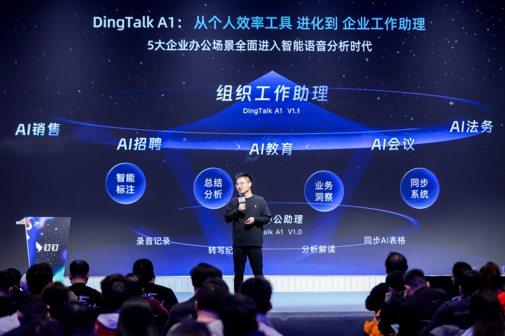 作为2025年国产AI硬件黑马,钉钉首款AI硬件DingTalk A1面向行业场景持续升级,从个人效率工具进化到团队工作助理。在销售、招聘、管理、法务等场景下,DingTalk A1能够融入工作流程,自动汇总、标注、分析录音内容,并与生态伙伴实现联动应用。企业统一采购和配置后,录音数据可直接导入业务系统,便于企业集中管理和经营数据分析。