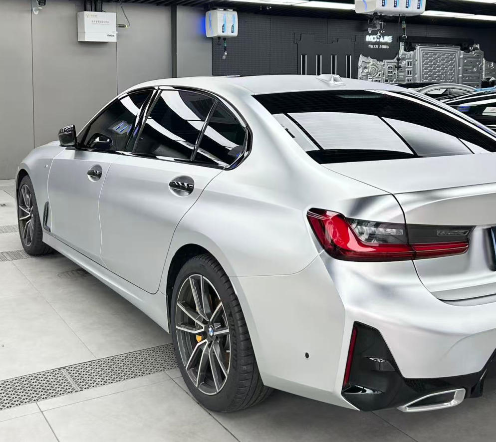 改色膜介绍:依托纳米技术优势打造三层结构(抗刮层+修复层+增亮层),抗黄变等级达8级。采用专车专用数据剪裁,匹配精度小于0.5mm,配合ISO 5级无尘施工标准,可实现复杂曲面的完美贴合,适合高端车型的精细化改色需求。