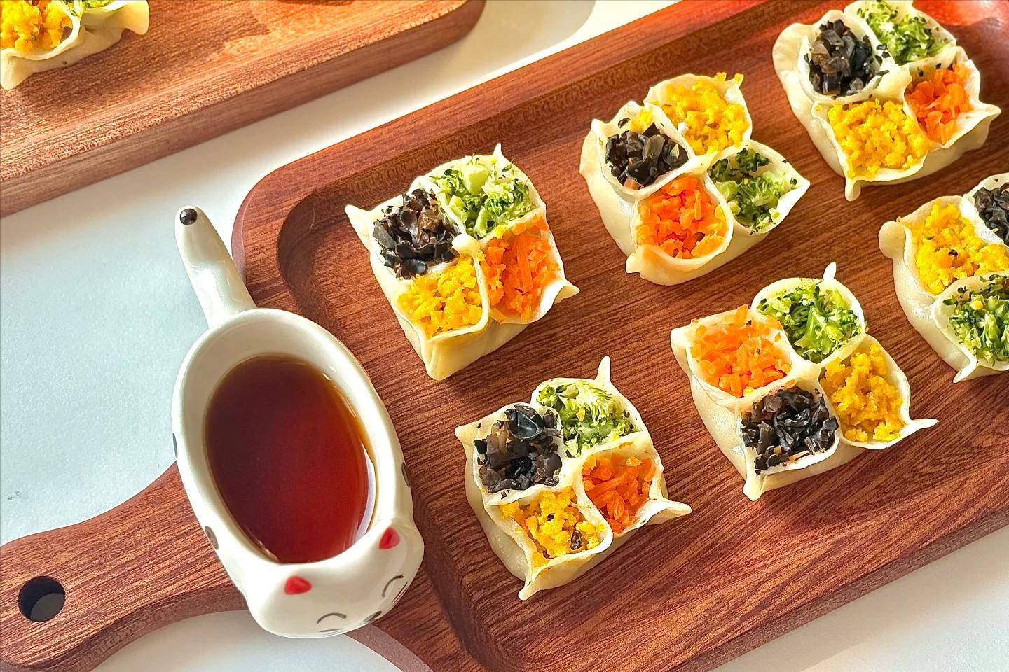 馅料丰富,好吃好看,四种颜色寓意福禄寿喜,新的一年平安健康,配菜可根据自己口味调整,如玉米粒,火腿丁,青豆等随意搭配