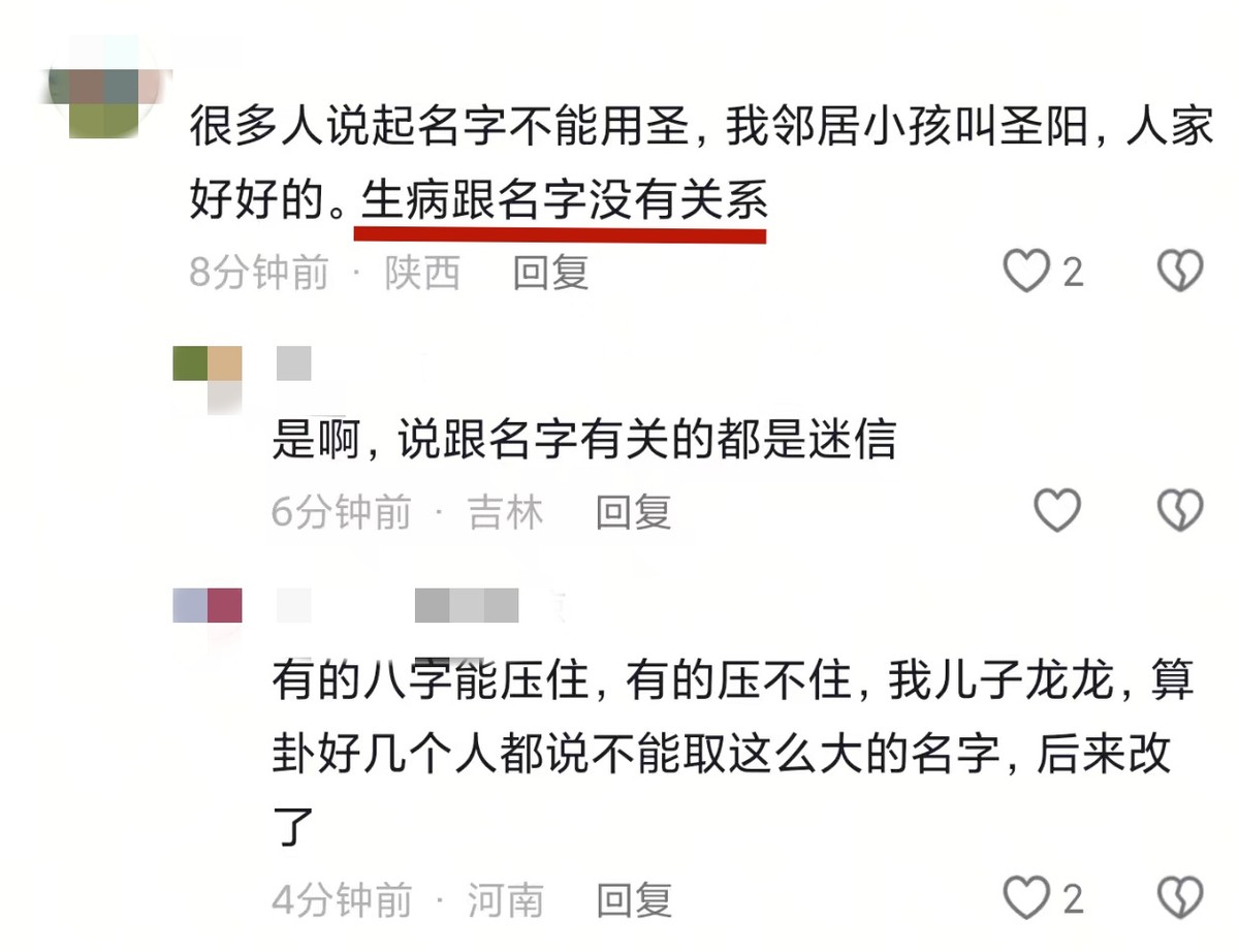 刘一圣过世后,有人在芳姐账号的评论里说她不该给儿子的名字里取“圣”字,因为这个字太大,一般人压不住。