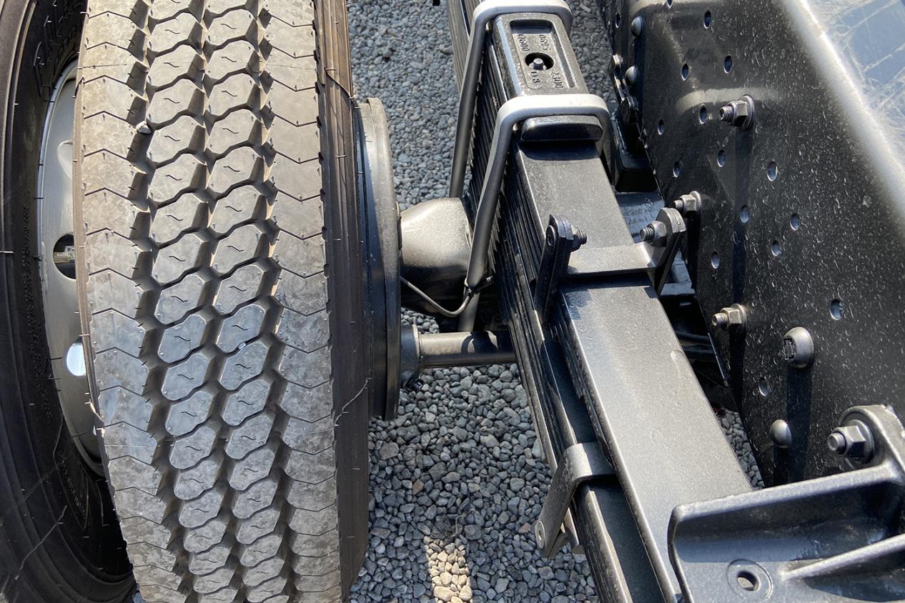 底盘方面同样针对载重能力进行了强化,比如车架就采用宽865mm,幅高215mm高强钢结构的直通梁,3吨前桥+8吨汉德免维护宽轮距后桥再加上前后多片簧,承载能力不输油车,对于货物种类的适应能力也足够的宽泛。