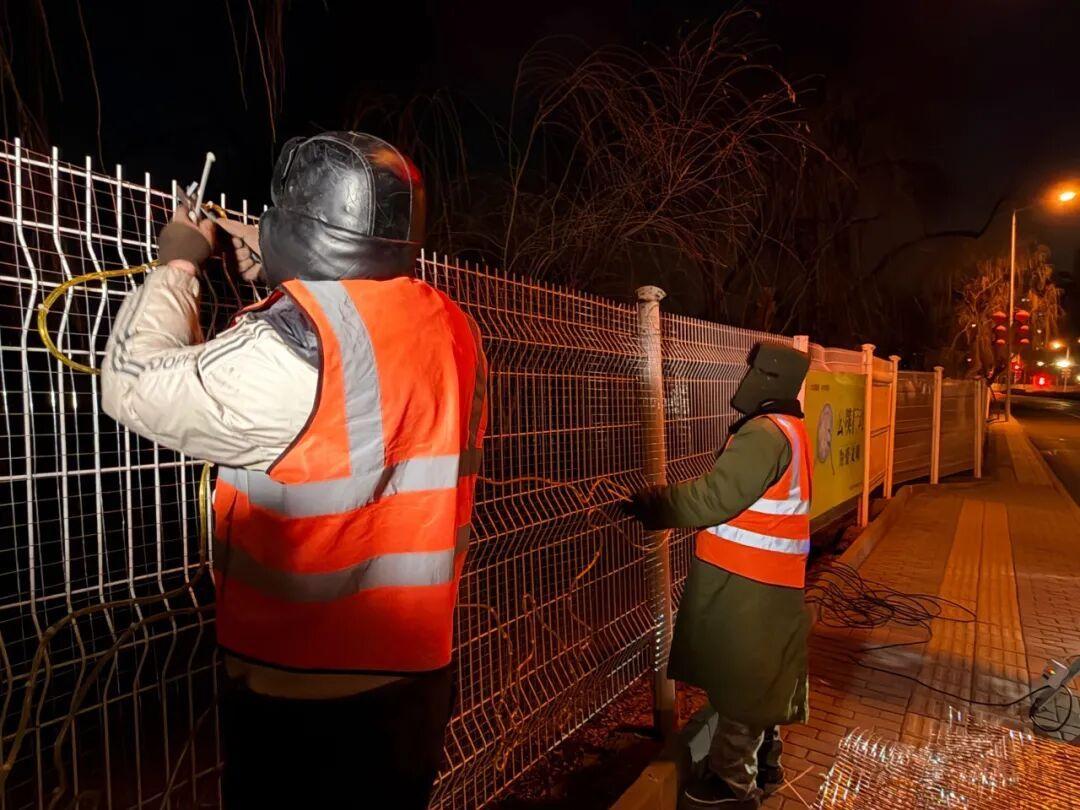 工人安装路侧景观灯带。年味儿的背后,是工人不辞辛劳的付出。深夜12点的右堤路,工人仍在忙碌,认真安装着“骏马奔腾”路侧景观灯带。他们用坚守为顺义的新春添彩。
