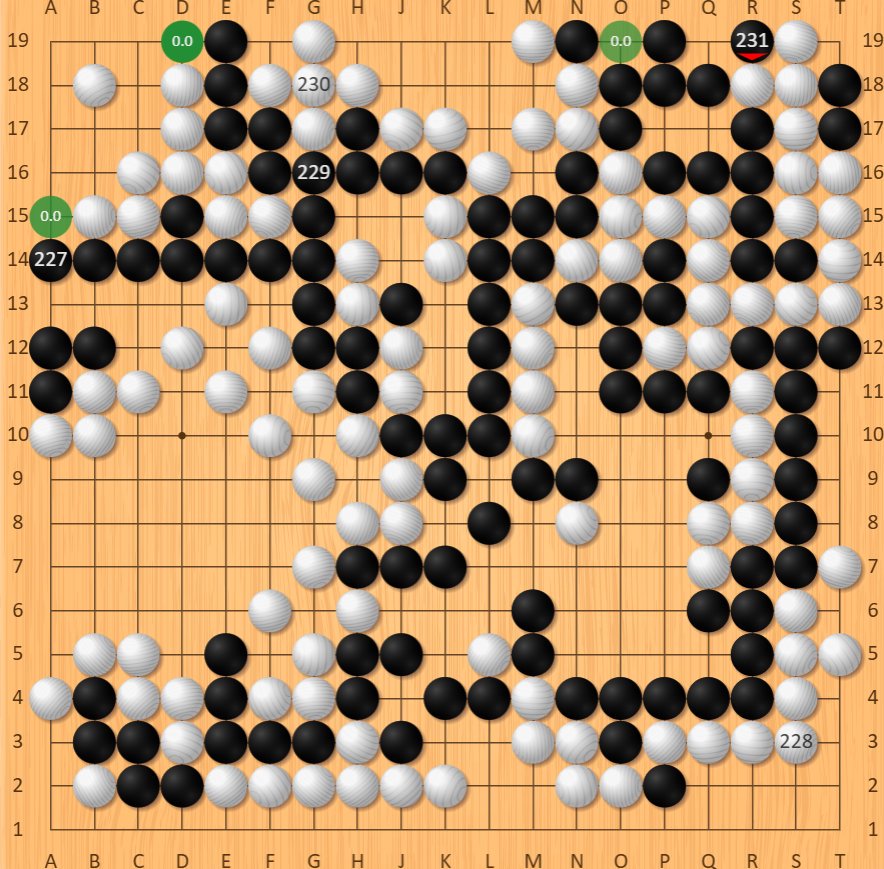 这样,在优势之下,党毅飞九段稳扎稳打,逐渐将白棋右边大龙包围,从而奠定了局面胜势!双方最终经过220余手的激战,芈昱廷未能逆转对局,从而投子认负!