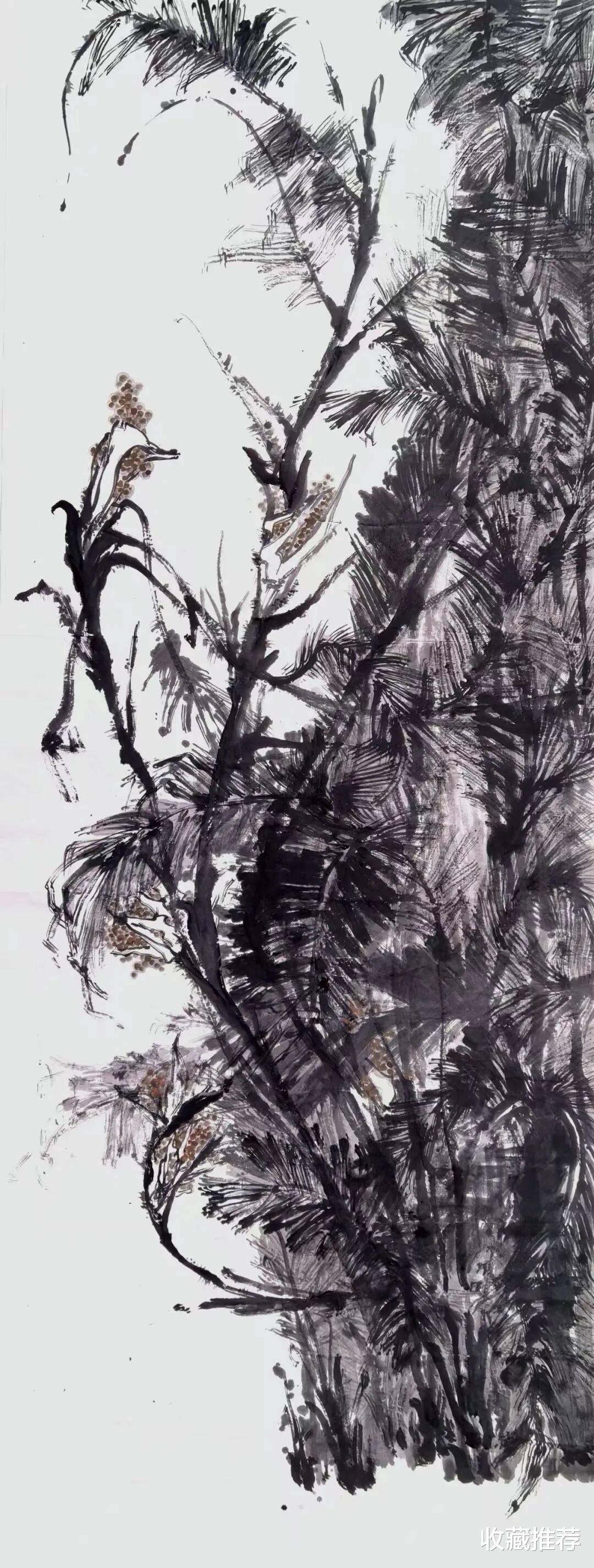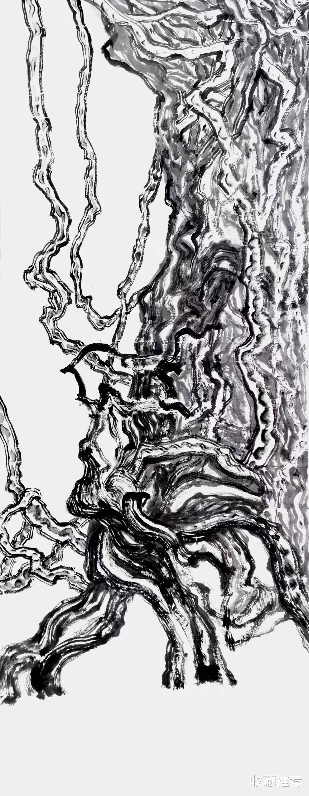 午后,光影穿林,斑驳落地。导师择奇树示范巨幅创作,先以水遍纸,任其浸润,后泼墨定势。墨象初成,再以线条勾章法,布虚实、调疏密。诸生屏息观之,尽悟画中道法。