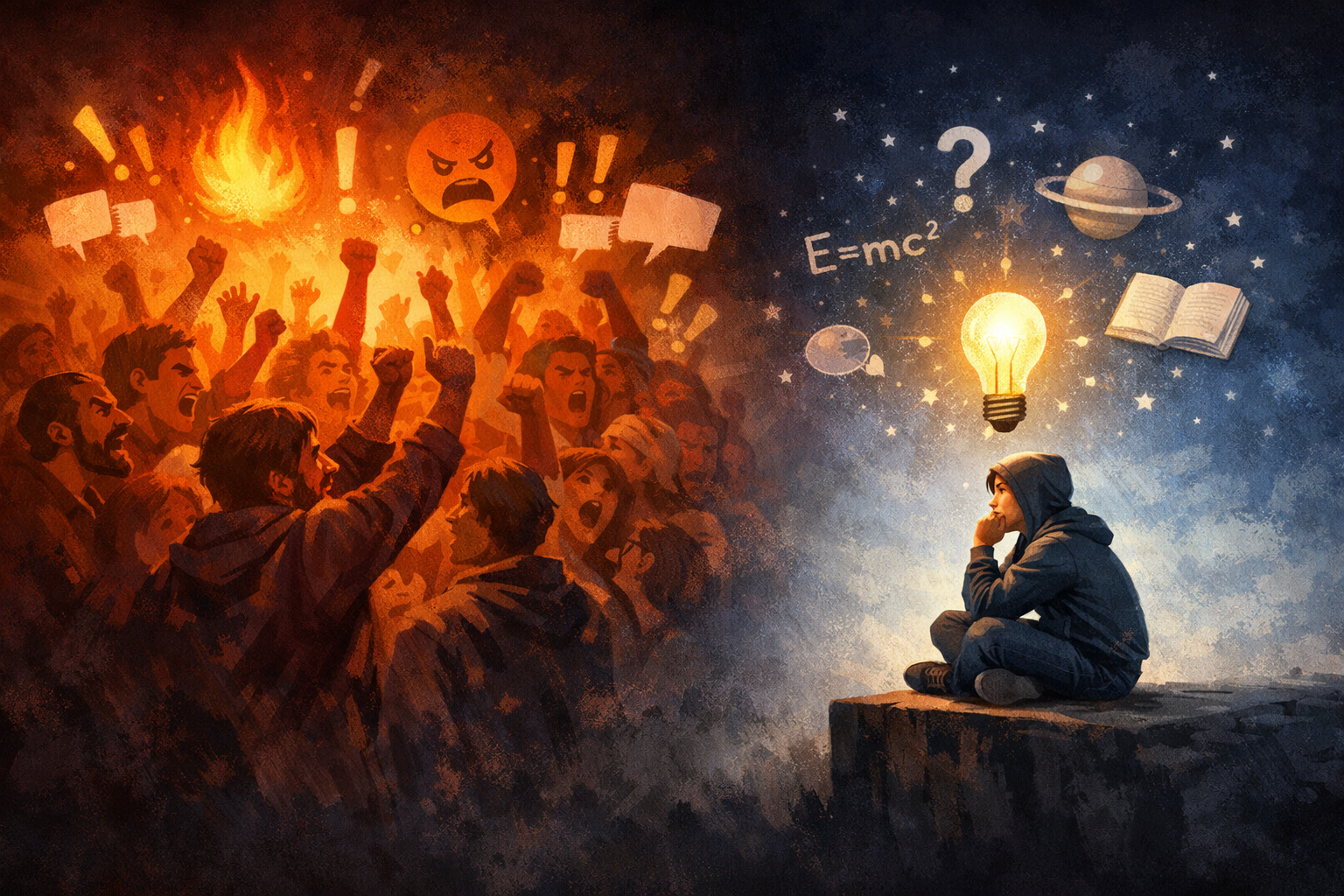 当焦点都冲向一个方向时,停下来想一想,在群体中,保留你的独立思考。