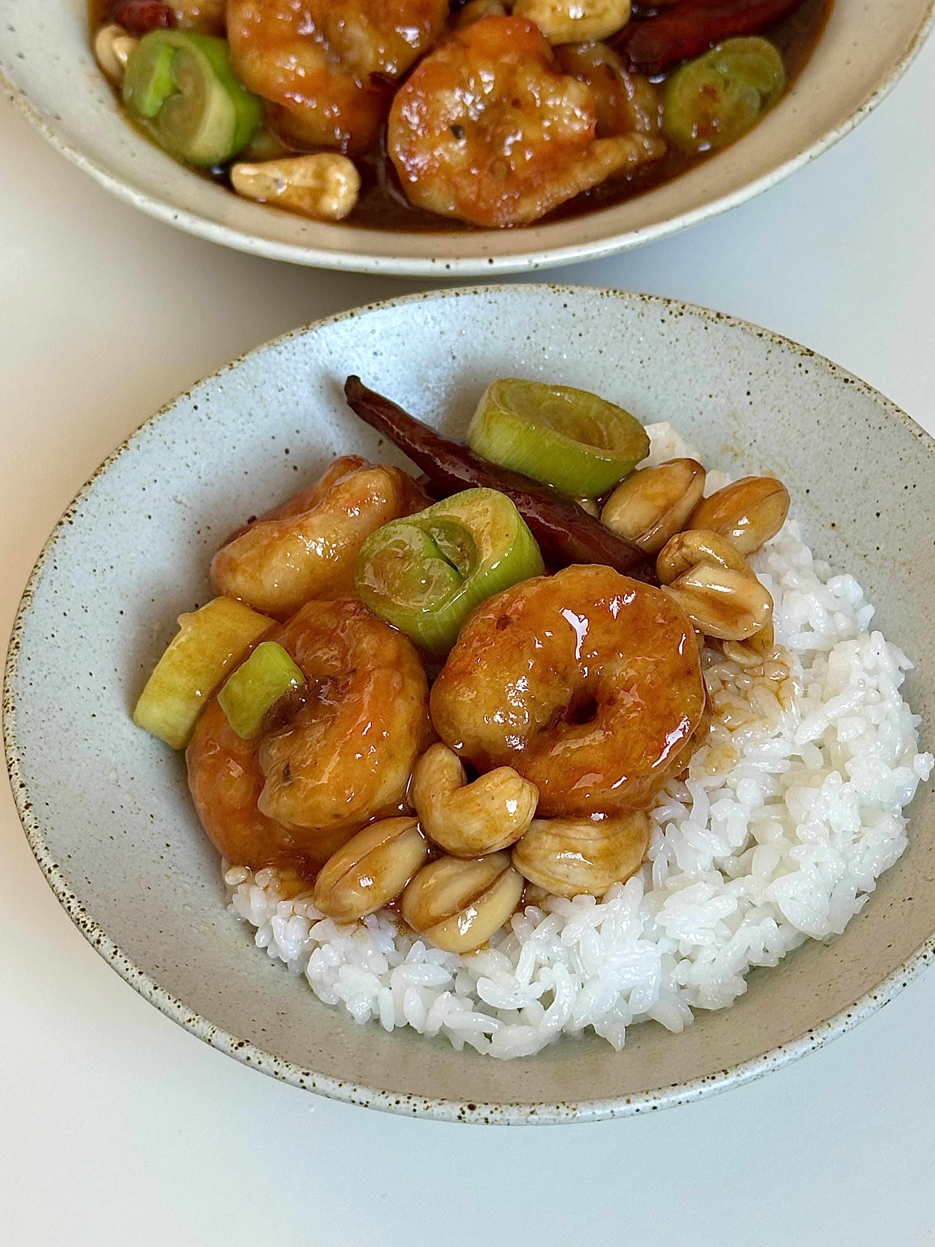 刚出锅的宫保虾球,红亮的酱汁裹着粉嫩的虾仁,花生米和葱段点缀其间,光是看着就让人流口水。夹一颗虾仁入口,外皮酥脆,内里弹嫩,酸甜的酱汁里藏着丝丝辣意,越嚼越香;再配一口撒着葱段的米饭,虾的鲜、酱的香、米的甜在嘴里交织,不知不觉一碗饭就见了底。难怪有人说:“宫保虾球是‘下饭神器’,专治各种没胃口。”