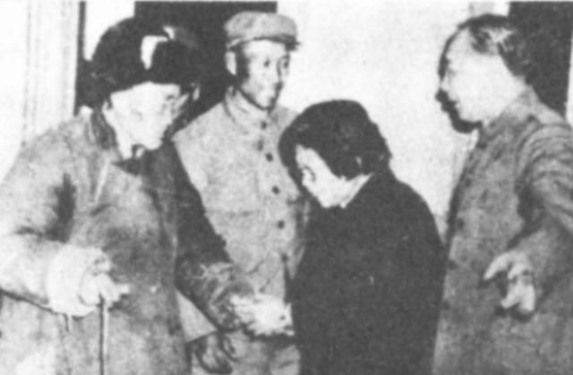 1987年,两位农民打扮的人来到全国政协接待室,要求见杨成武。其中一位老汉身着破旧棉袄,头戴狗皮帽,手持拐杖,显得年迈;另一位是中年人,陪同在旁。