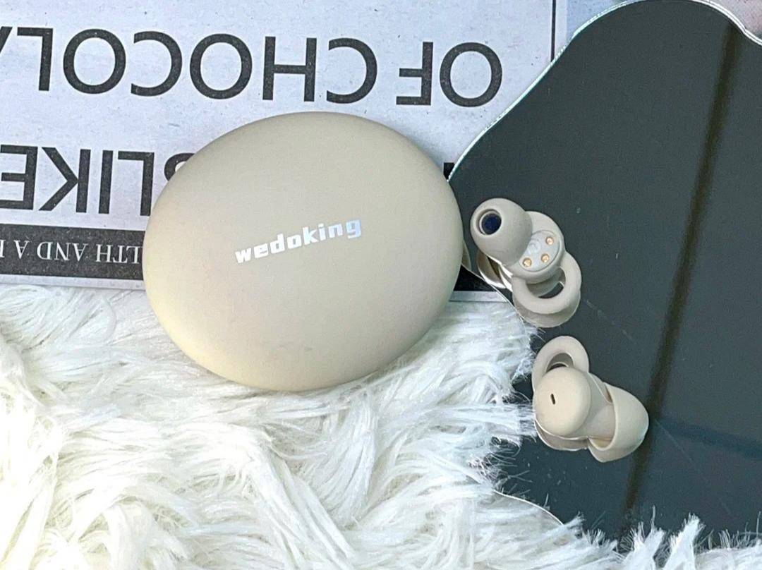 wedoking在睡眠耳机方向比较专注,产品设计偏向人体工学,也结合了一些智能功能,整体理念是让佩戴舒适、夜间使用更方便。这款耳机专门考虑了侧睡场景,整体体积轻巧,戴上耳朵后负担不大,长时间保持侧卧姿势也不会明显顶耳或者闷胀。入耳角度和贴合度做得还算自然,佩戴稳定性不错,睡觉翻身时基本不会滑落。降噪方面还行,它采用了双重隔音结构,能把生活中常见的背景声音像呼噜声、键盘声压低一些,不会完全隔绝外界声音。耳机附带多种硅胶耳帽,包括空气海绵材质,可以根据耳型调整,降噪体验会有差别。连接上搭载蓝牙5.3,实际使用中比较稳,没出现明显断连的情况。