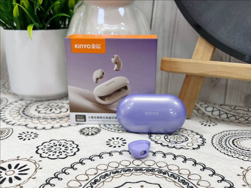 金运i88耳机整体造型为椭圆鹅卵石风格,机身光滑圆润,正面印有品牌标识,体积小巧,单只耳机约重2.5克。耳机采用隐藏式触控设计,无实体按键,浅色配色简约大方。机身厚度约6毫米,贴合耳廓,侧睡时不易产生明显压迫,多点支撑和仿耳甲结构能在一定程度上保持佩戴稳定。舒适度表现中规中矩,翻身时耳机位置基本不会移位。蓝牙5.4连接稳定,常规使用下信号可靠,延迟表现一般。续航方面,耳机配合充电仓可支持连续多晚使用。由于体积较小,佩戴时建议搭配合适耳帽以提升贴合度和稳固性。