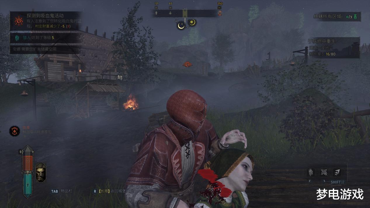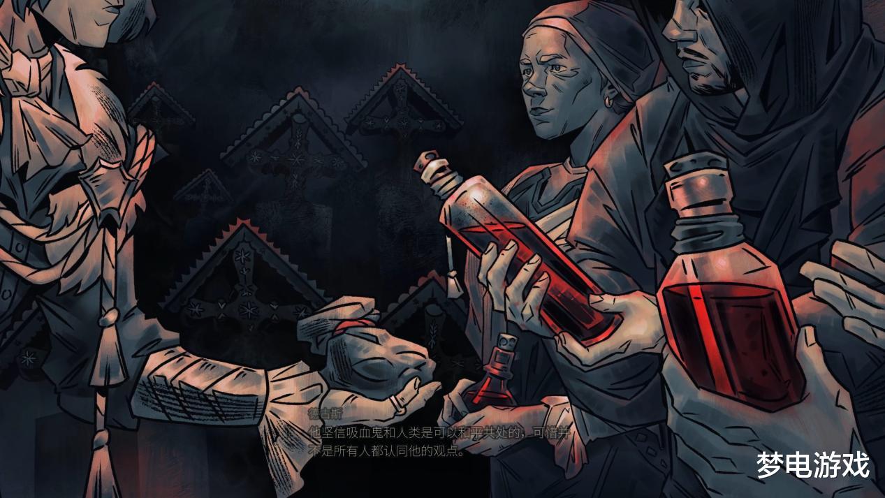 而且就像在和问游牧民族“和每只羊都有了感情,那吃羊的时候该杀哪一只”的问题一样,游戏中,你还可以通过与所有村民交谈来逐步获得全部村民的个人信息,比如某位村民是酒鬼、某位村民十分勤劳或是某位村民有贪婪的坏习惯等。而你就可以根据这些信息来判断该如何在挑选将哪名村民吸血杀死或变成血仆时将利益最大化。