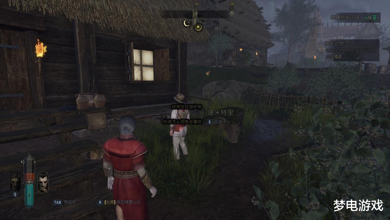 简单来说,与《夜族崛起》中吸血鬼与人类互为猎人与猎物的简单敌对关系不同,由于《嗜血之王》的设定是主角的前任领主是一名致力于推动吸血鬼与人类和平共存的吸血鬼,因此玩家在进入游戏后第一次接触的新手村庄并非是供玩家练习潜行、提供血包的狩猎场,而是处在主角管辖与庇佑之下的领地。